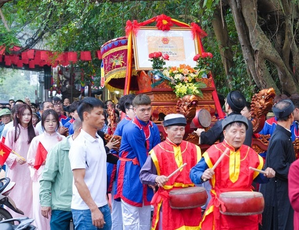 Đoàn rước Bằng được nhân dân tổ chức trang trọng. Ảnh: Hoàng Sơn