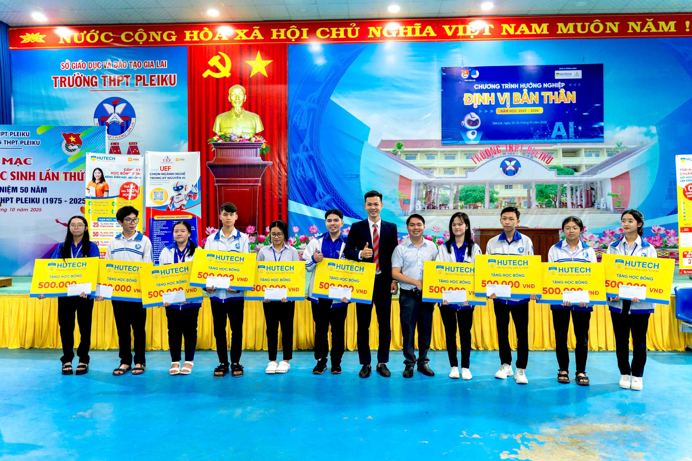 Trong chuỗi hành trình hướng nghiệp này, hai trường đại học đã trao tặng 120 suất học bổng tại 6 trường THPT trên địa bàn tỉnh Gia Lai với tổng giá trị 60 triệu đồng (500.000đ/1 suất) cho các em học sinh vượt khó, nỗ lực phấn đấu vươn lên trong học tập và rèn luyện. Ngoài ra, ban tổ chức cũng trao tặng 15 góc học tập cho các em đội viên chăm ngoan học tốt của Liên đội TH-THCS Lê Văn Tám.