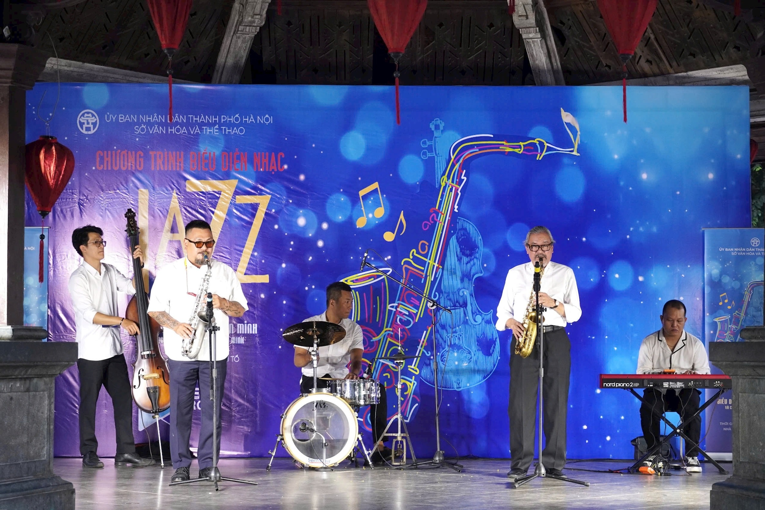 NSƯT Quyền Văn Minh và các nghệ sĩ Bình Minh Jazz Club biểu diễn. Ảnh: BTC