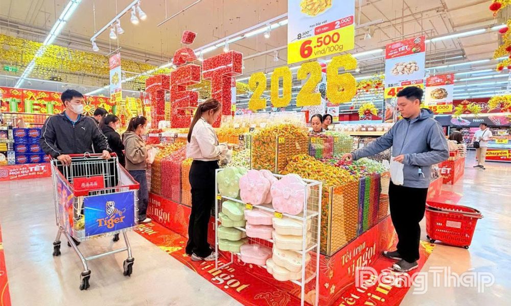 Ghi nhận tại phường Đạo Thạnh, không khí mua sắm trong dịp Tết Dương lịch cũng khá sôi động. Tại Trung tâm thương mại GO! Mỹ Tho, lượng khách tham quan và mua sắm tăng hơn 10% so với Tết Dương lịch 2025. Khách hàng ưu tiên lựa chọn bánh, kẹo, thực phẩm tươi sống, đặc biệt là trái cây nhập khẩu, quần áo và các mặt hàng tiêu dùng thiết yếu.