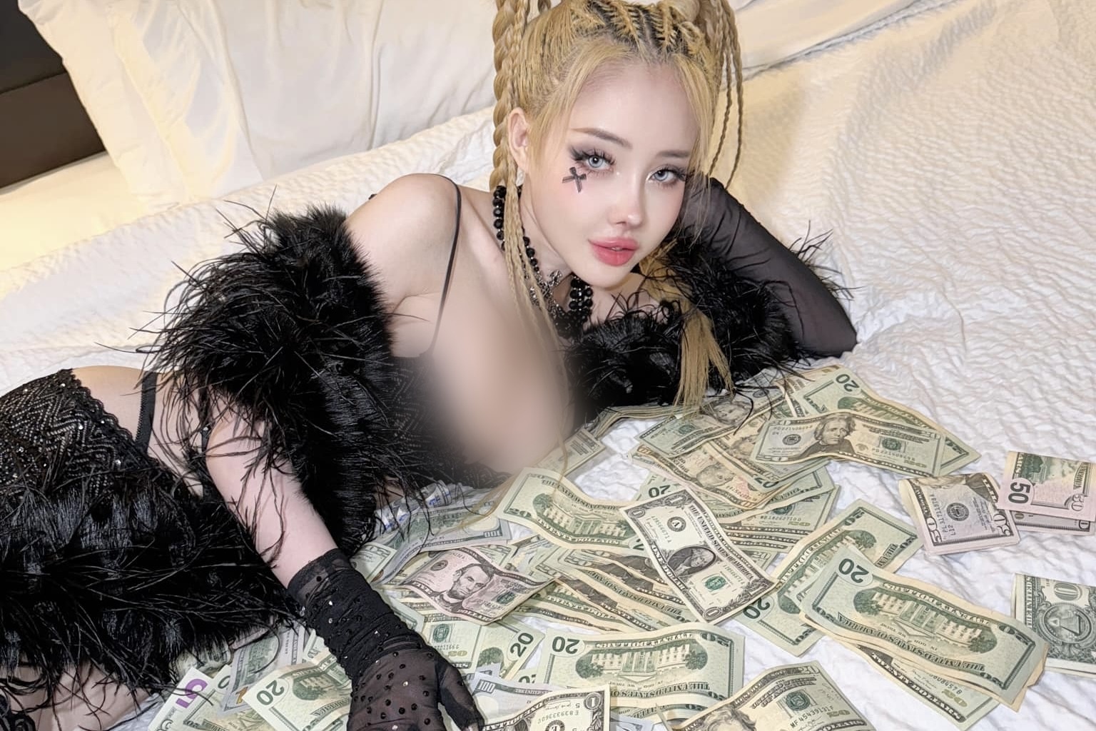 Ngân 98 khoe tiền sau một buổi diễn ở Mỹ. Ảnh: FBNV.