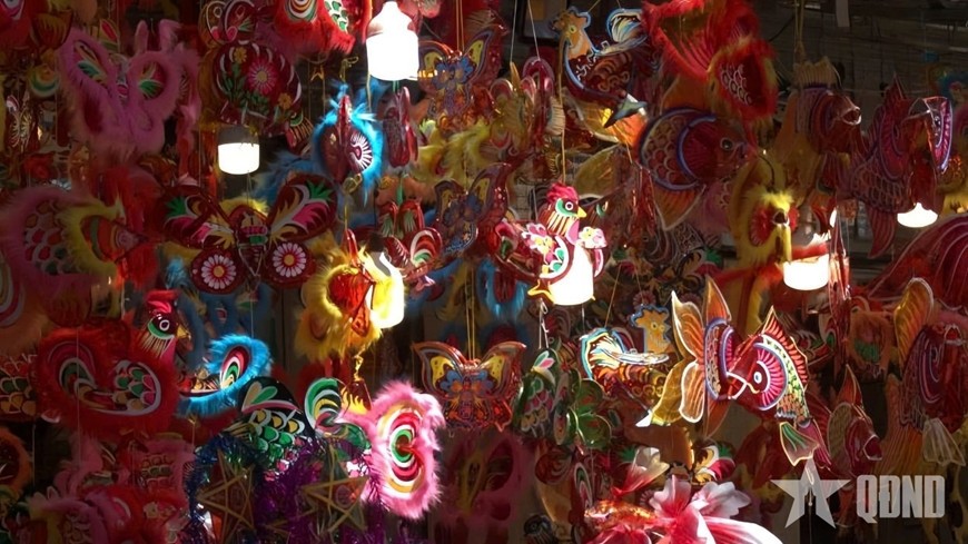 Những chiếc đèn lồng Trung thu truyền thống với đủ màu sắc và hình dáng được trang trí khắp phố Hàng Mã.
