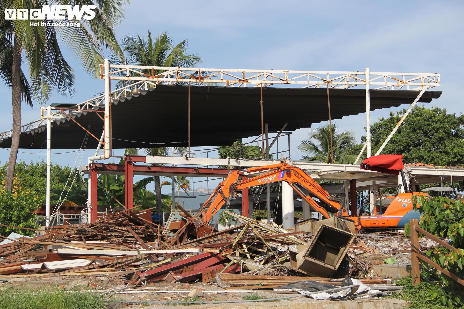 Những ngày qua, hàng chục công nhân cùng với thiết bị máy móc đang tháo dỡ các hạng mục công trình của nhà hàng Ana Beach House (phường Nha Trang, tỉnh Khánh Hòa) do Công ty TNHH Sovico Khánh Hòa quản lý, khai thác.