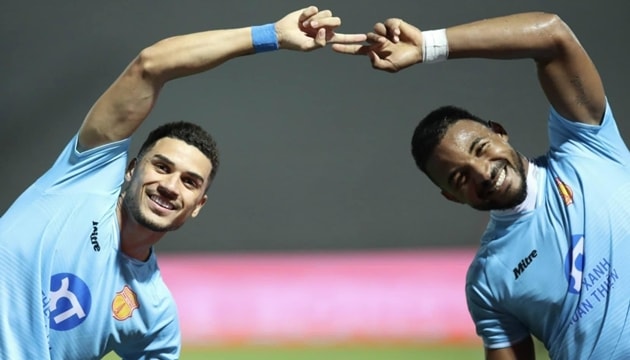 Hoàng Hên và Xuân Son trong màu áo CLB Nam Định.