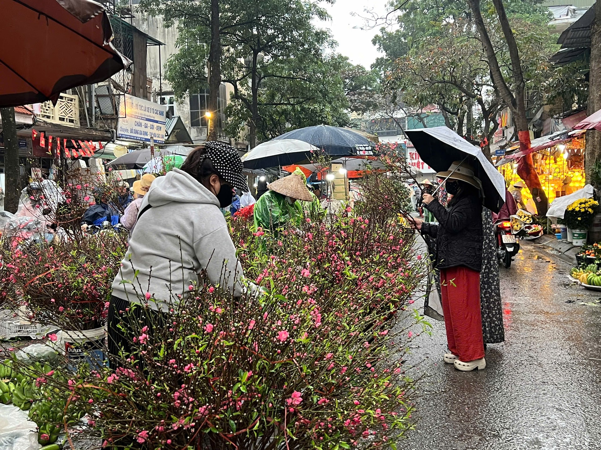 Đào Nhật Tân dù từng bị ảnh hưởng bởi mưa bão từ tháng 10-2025 nhưng nhờ các nhà vườn sớm khôi phục nên nguồn cung ra thị trường vẫn khá dồi dào. Ngoài ra, đào từ các vùng lân cận cũng đổ về Hà Nội. Giá đào dao động 60.000-100.000 đồng/cành nhỏ, 150.000-200.000 đồng/cành to.