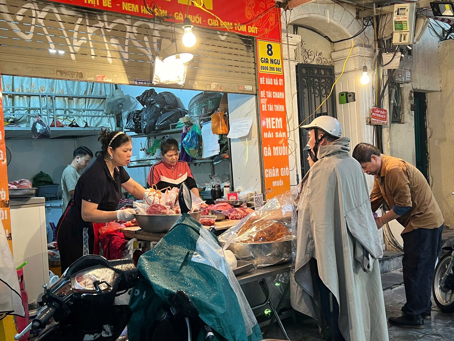 Tại các cửa hàng bán đồ làm sẵn, không khí mua bán khá nhộn nhịp. Gà luộc, xôi, chim quay, canh măng, nộm… bày kín quầy hàng. Gà luộc sẵn ở Hàng Bè 230.000 đồng/kg tương đương 400.000 đến hơn 500.000 đồng/con; canh măng 250.000 đồng/bát; chim quay 120.000 đồng/con; tôm chiên hoàng bào 220.000 đồng/6 con; xôi gấc 40.000–80.000 đồng/đĩa, nem hải sản 120.000/10 cái...
