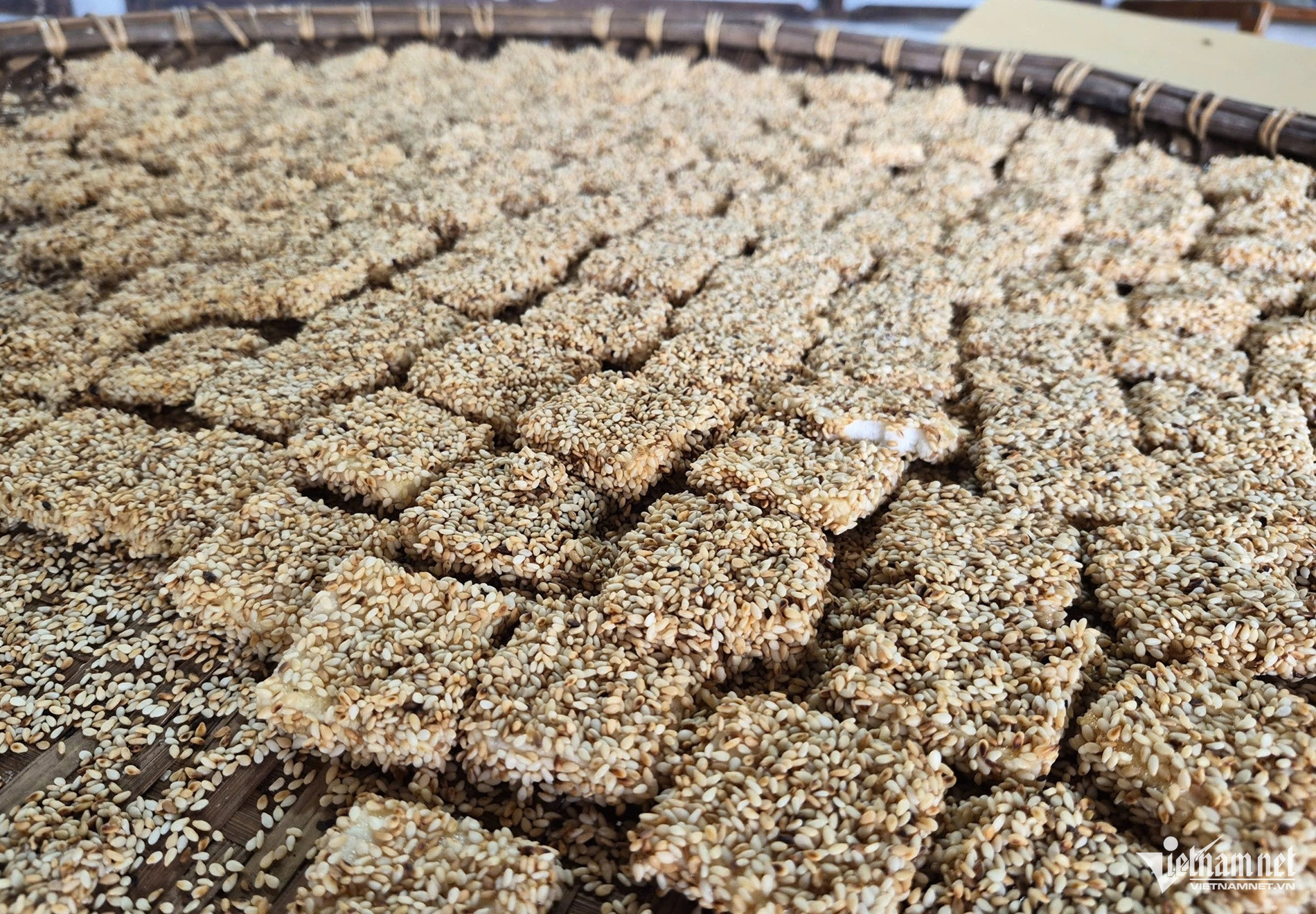 Bánh khô mè tại thôn Quang Châu được làm thủ công hoàn toàn