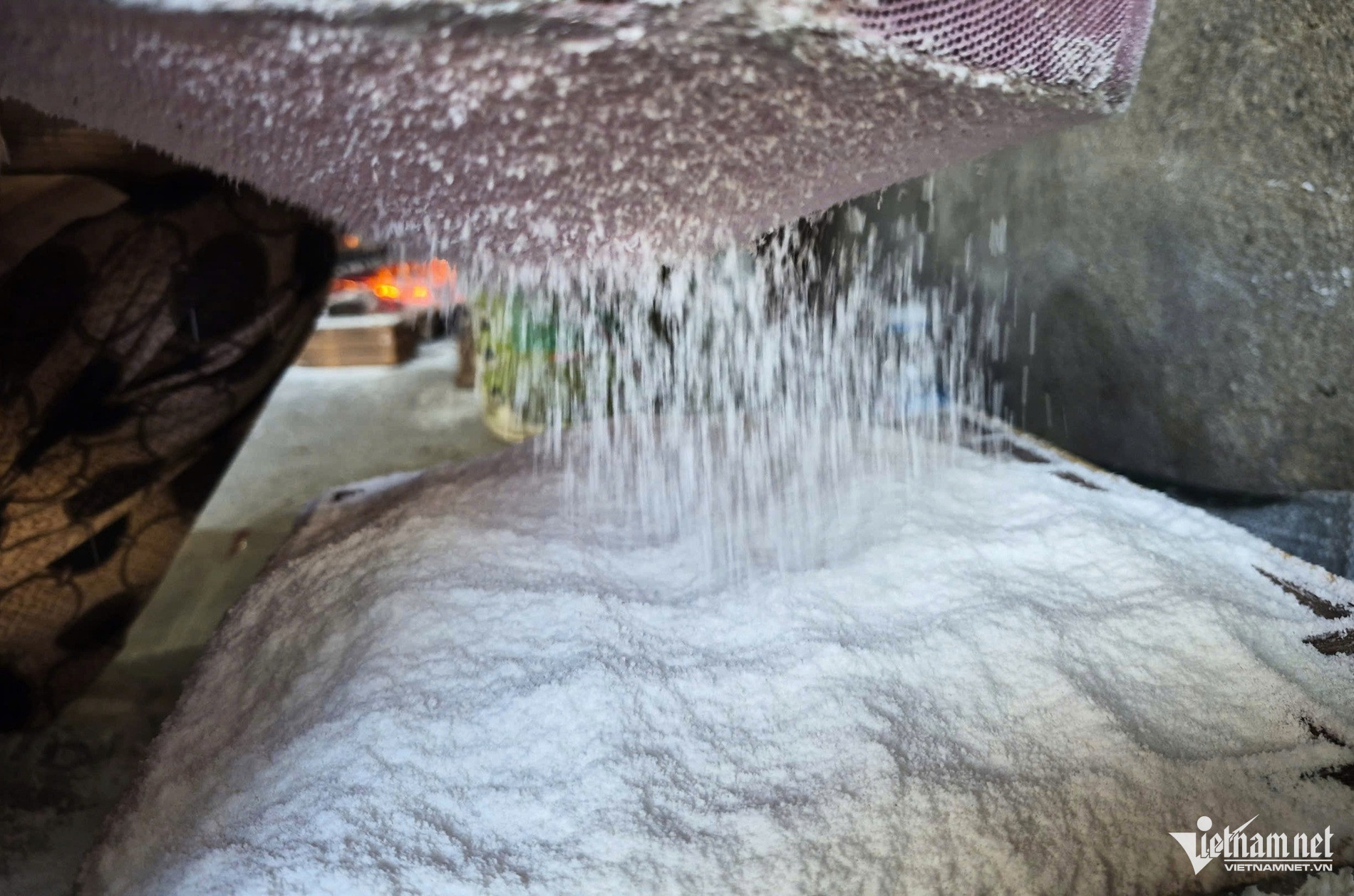 Bà Nghĩ cho biết, để có được chiếc bánh khô mè đạt chuẩn, người thợ phải trải qua bảy lần nướng trên lửa, mỗi công đoạn đều rất quan trọng. Vào cao điểm cận Tết, lò bánh của gia đình thường đỏ lửa từ 2h đến khoảng 14h mới tạm nghỉ. Riêng mùa Tết, gia đình bà sử dụng khoảng 1 tấn gạo để làm bánh.
