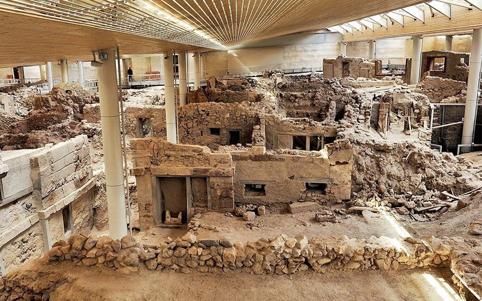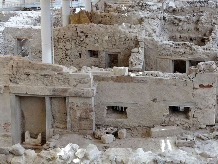 Là một trong những đô thị tiền sử được bảo tồn tốt nhất Địa Trung Hải. Akrotiri nằm trên đảo Santorini (Hy Lạp) và được chôn vùi dưới tro núi lửa vào khoảng thế kỷ 16 TCN, giúp kiến trúc và hiện vật gần như nguyên vẹn. Ảnh: Pinterest.