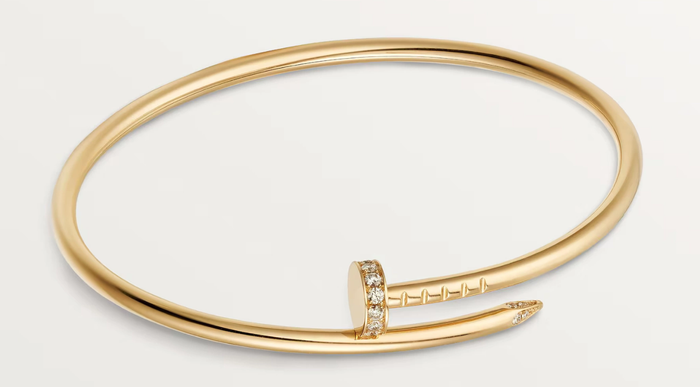 Trái ngược với tinh thần lãng mạn của LOVE, Cartier Juste un Clou là lời khẳng định cá tính mạnh mẽ và tư duy phá cách. Được giới thiệu vào năm 1971, bộ sưu tập này lấy cảm hứng từ hình ảnh chiếc đinh và biến nó thành món trang sức xa xỉ đầy nghệ thuật. Thiết kế uốn cong mô phỏng hình dáng chiếc đinh mang đến cảm giác hiện đại, táo bạo, phá vỡ những khuôn mẫu truyền thống trong chế tác trang sức cao cấp.