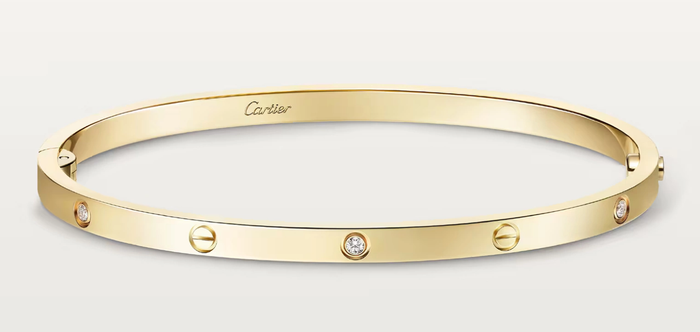Ra đời năm 1969, vòng tay Cartier LOVE nhanh chóng ghi dấu ấn nhờ ý tưởng về sự gắn kết và cam kết lâu dài. Thiết kế oval đặc trưng cùng các họa tiết vít được sắp xếp đều đặn quanh thân vòng mang hàm ý về một mối liên kết bền chặt, chỉ có thể tháo ra bằng chiếc tua vít chuyên dụng đi kèm. Về chất liệu, Cartier LOVE được chế tác từ vàng 18K với nhiều lựa chọn như vàng vàng, vàng hồng, vàng trắng, bên cạnh các phiên bản nạm kim cương tinh xảo.