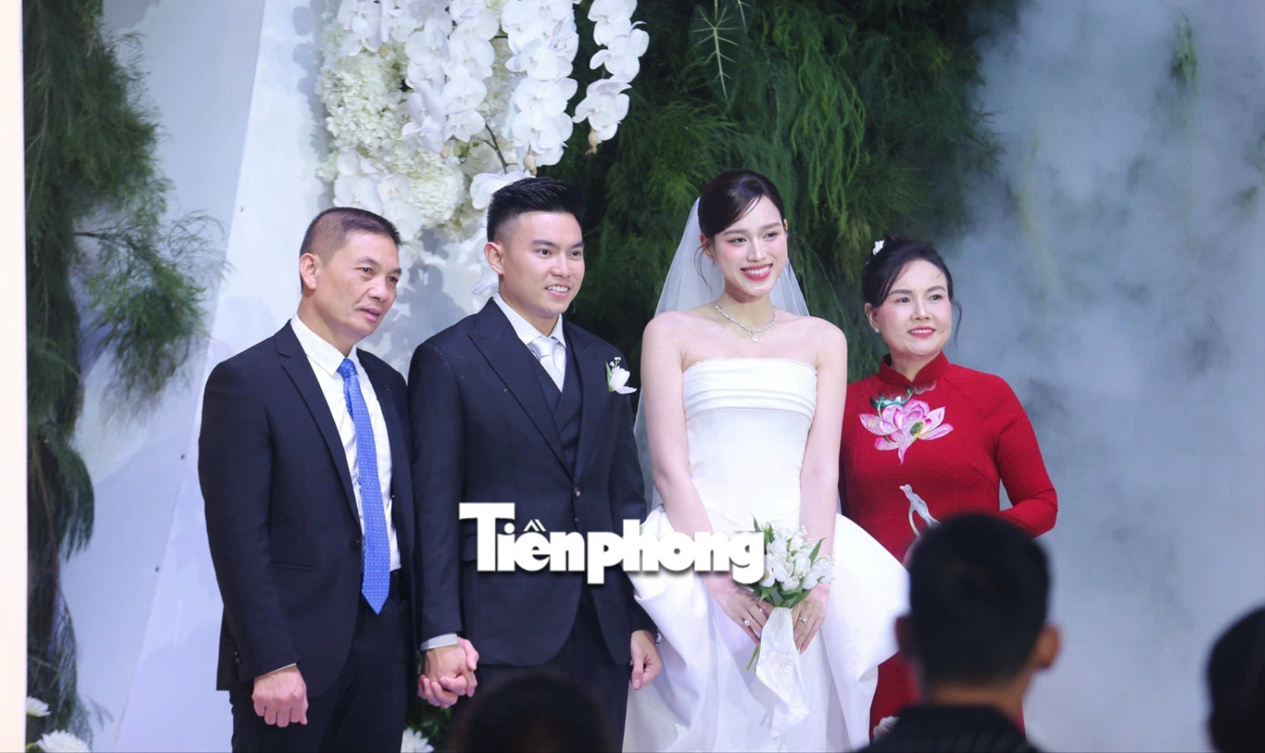 Đại diện nhà trai bày tỏ hạnh phúc khi từ nay trở đi, gia đình có thêm con dâu. "Tôi chúc hai con hạnh phúc, viên mãn. Mong mọi người chúc phúc cho gia đình chúng tôi", ông Viết Hải - bố chú rể - chia sẻ.