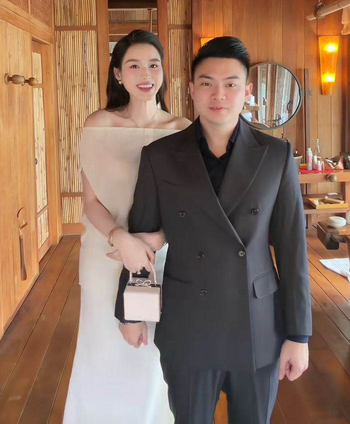 Lần hiếm hoi Đỗ Thị Hà cho chồng "lên sóng" sau khi kết hôn. Ảnh chụp màn hình