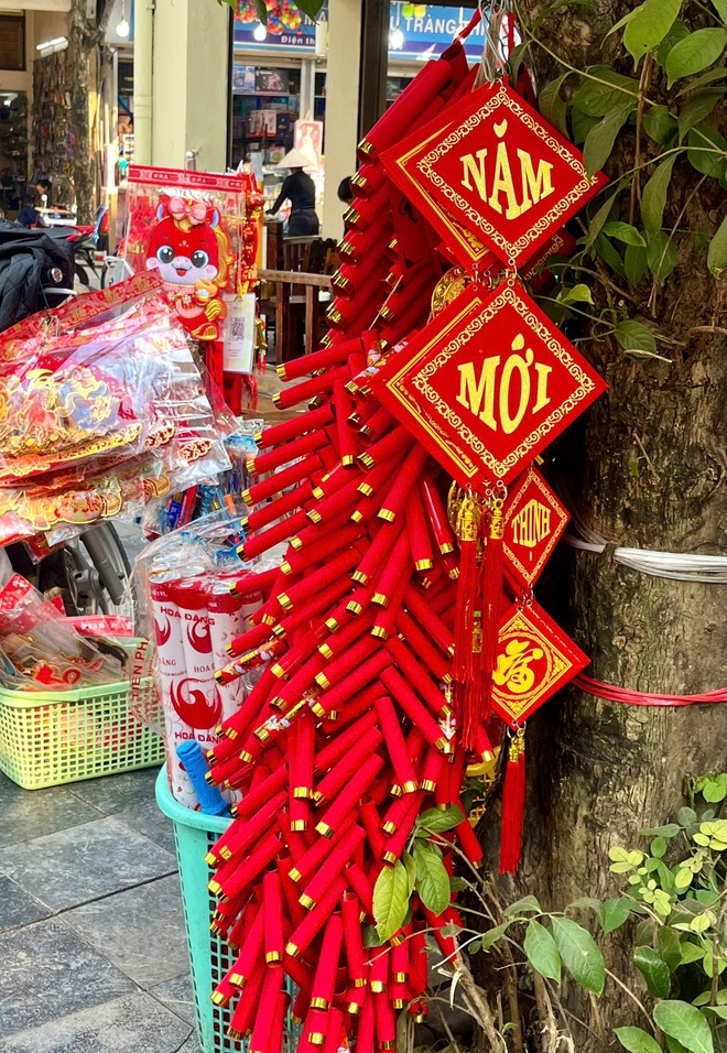 Theo ghi nhận của phóng viên, những ngày cuối tháng 11 âm lịch, các khu phố quen thuộc như Hàng Mã, Lương Văn Can, Đồng Xuân… trở nên tấp nập. Từ sáng đến tối, các cửa hàng đồng loạt bày bán đồ trang trí Tết với đủ mẫu mã, kích thước và mức giá.