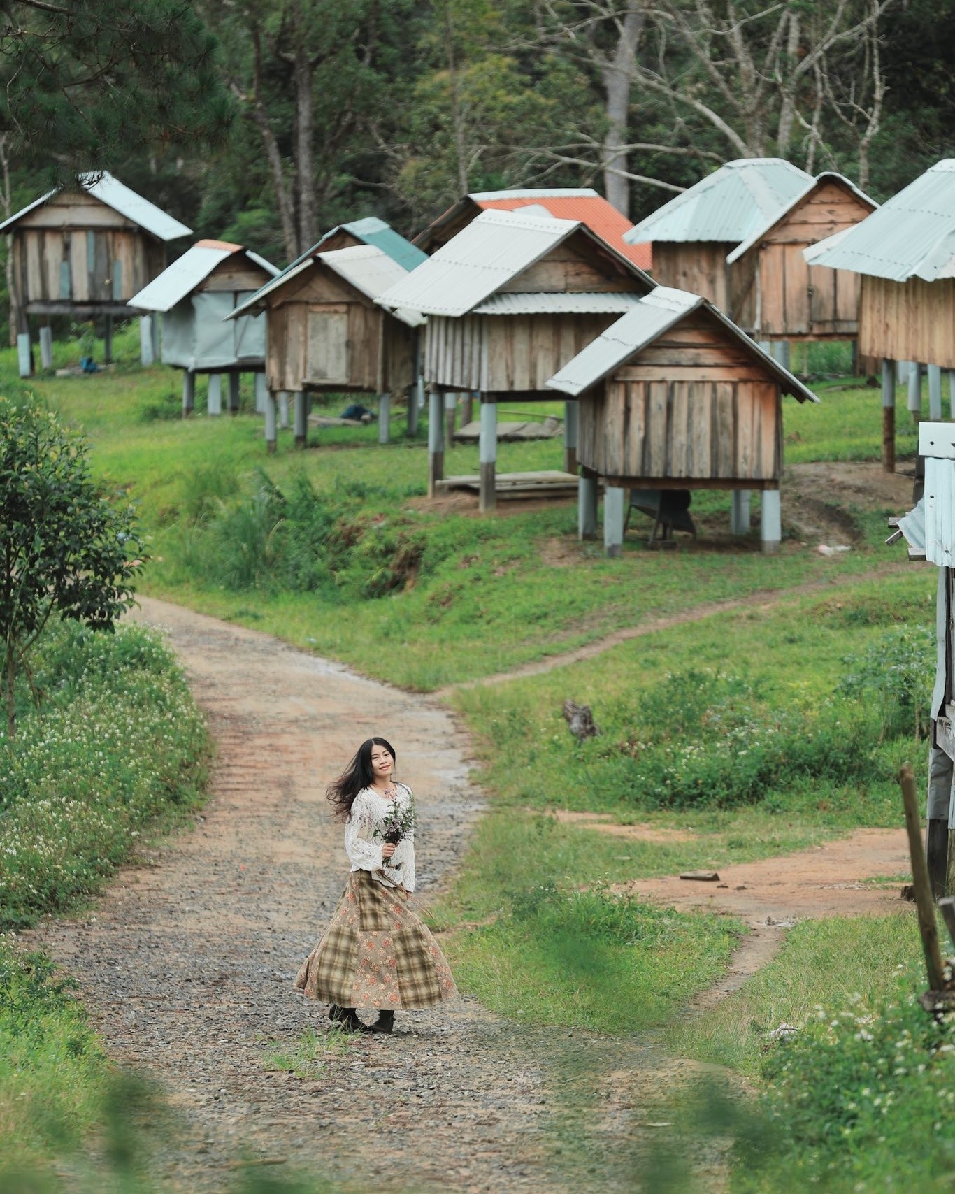 Làng Kon Tu Ma (xã Măng Đen, Quảng Ngãi) nằm cạnh dòng sông Đăk S’Nghé, bao quanh là ruộng nương và rừng cây. Đây là nơi sinh sống chủ yếu của cộng đồng dân tộc Xơ Đăng giàu bản sắc. Vốn là ngôi làng kín tiếng, trong lành và hiếm khách du lịch biết đến, nay lại trở thành điểm đến được "săn đón" nhiệt tình nhờ hàng chục kho trữ lúa nhỏ nhắn, xây theo kiến trúc nhà sàn Tây Nguyên, trải đều từ ngoài đồng, góc vườn đến bìa đồi. Khung cảnh nơi đây cũng thơ tựa như "Đà Lạt thu nhỏ". Ảnh: Du lịch Măng Đen.