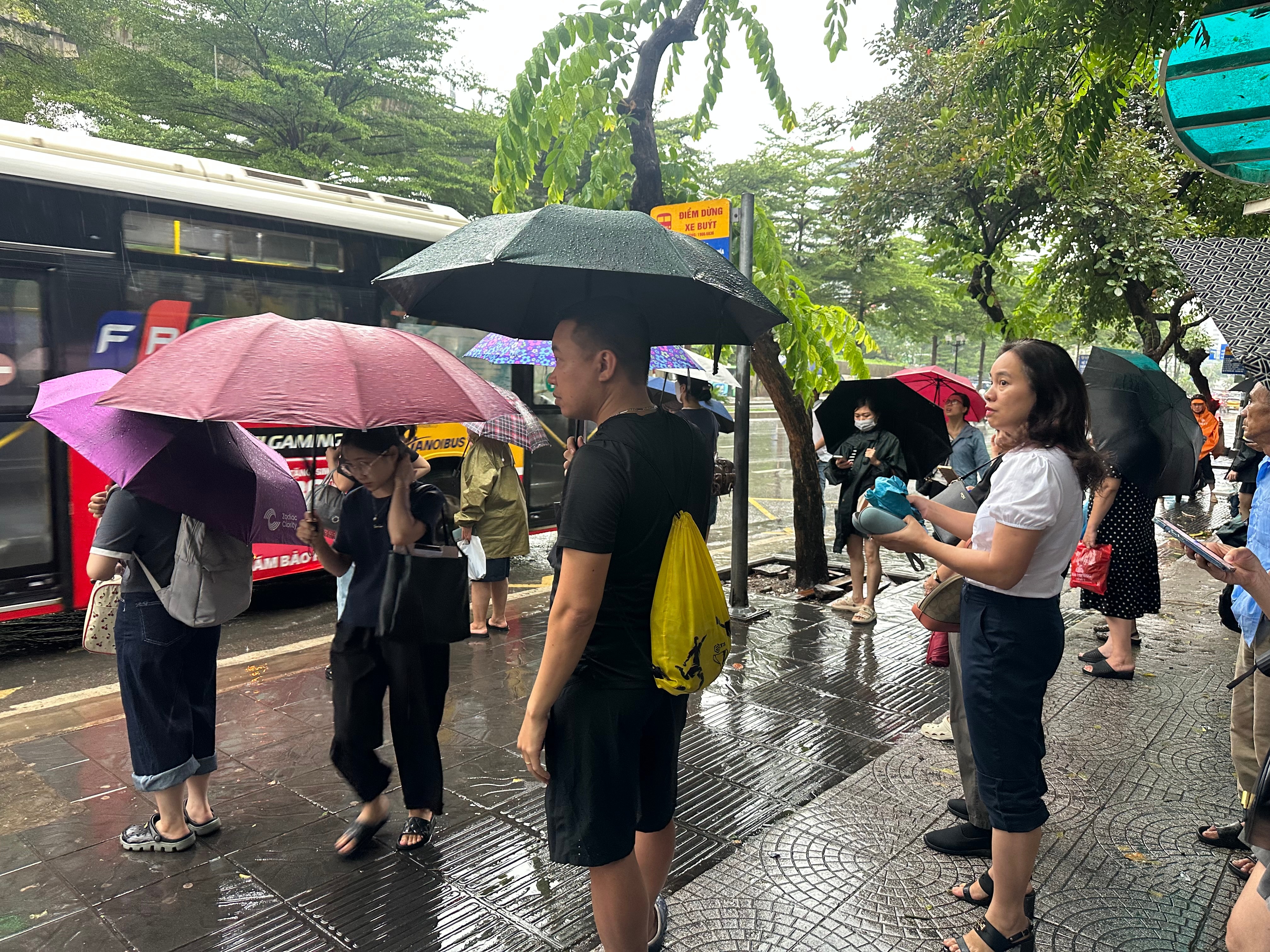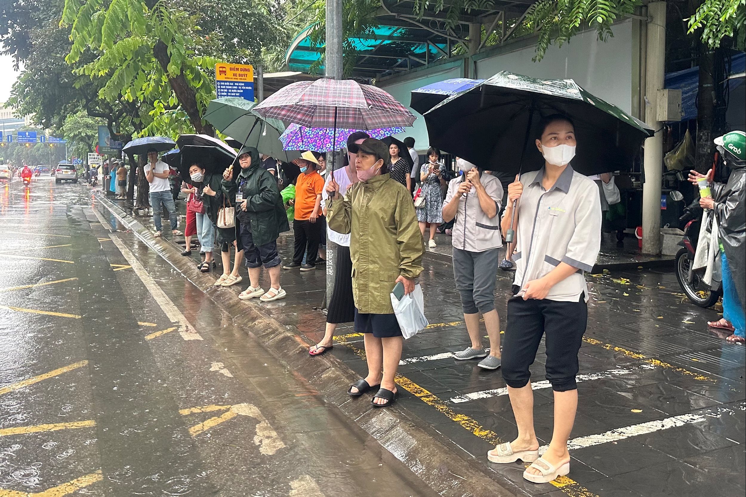 Trời vẫn mưa, xe vào bến khó khăn, nhưng không ai tỏ ra bực bội. Mỗi khi xe buýt xuất hiện, mọi người tự giác xếp hàng, cố gắng nhường nhau lên xe. Không khí dù mệt mỏi nhưng trật tự, khác hẳn những buổi sáng thường ngày vội vã.