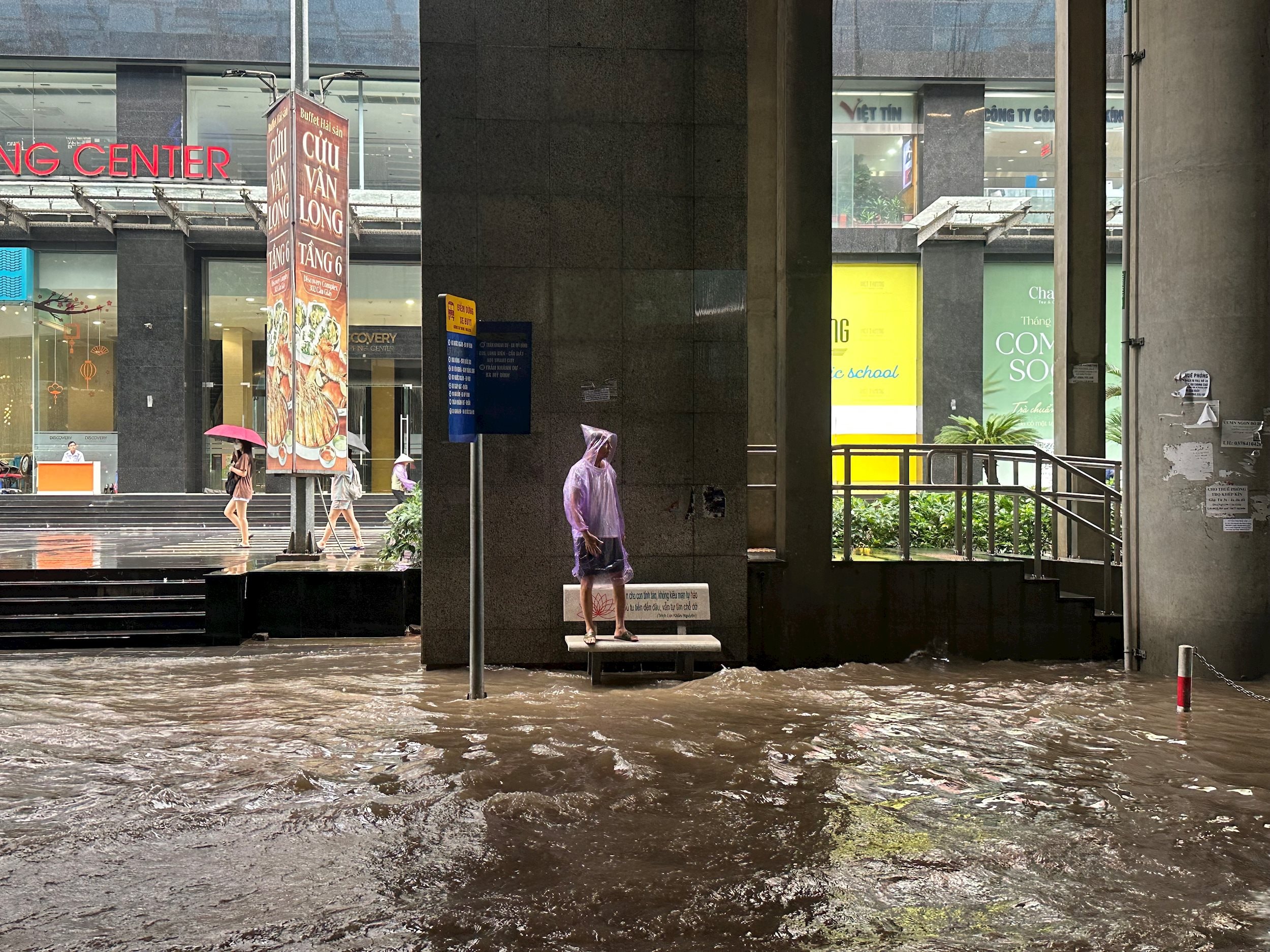 Nhiều điểm chờ xe nước nhấn chìm.