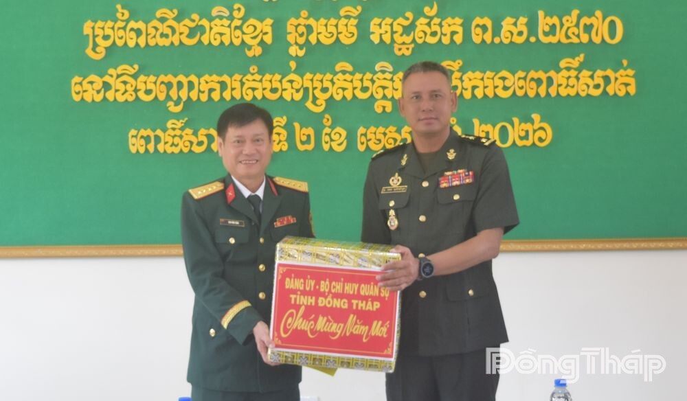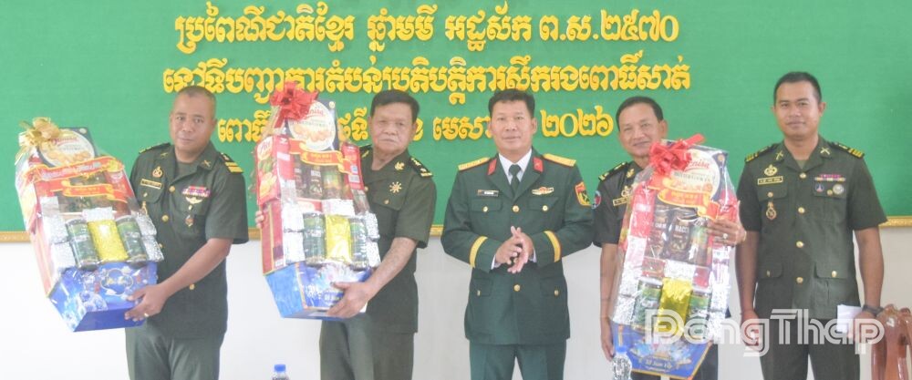 Thay mặt Lực lượng vũ trang (LLVT) tỉnh Đồng Tháp, Đại tá Cao Văn Thảo chúc LLVT Tiểu khu quân sự Pua-Sat và cán bộ, nhân viên Cục phát triển - Bộ Quốc phòng Campuchia đón Tết Cổ truyền Chôl Chnăm Thmây nhiều sức khỏe, an khang, thịnh vượng, hạnh phúc, thành công.