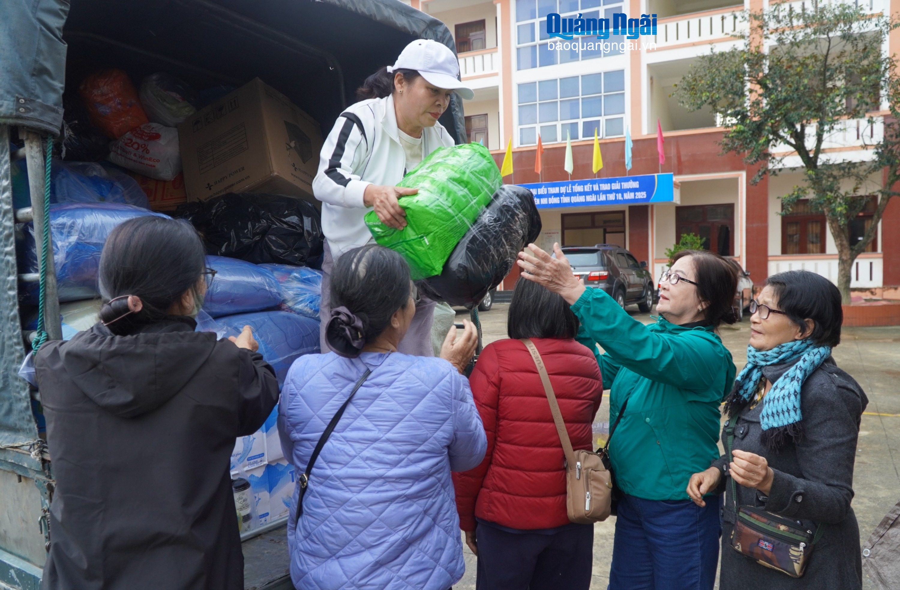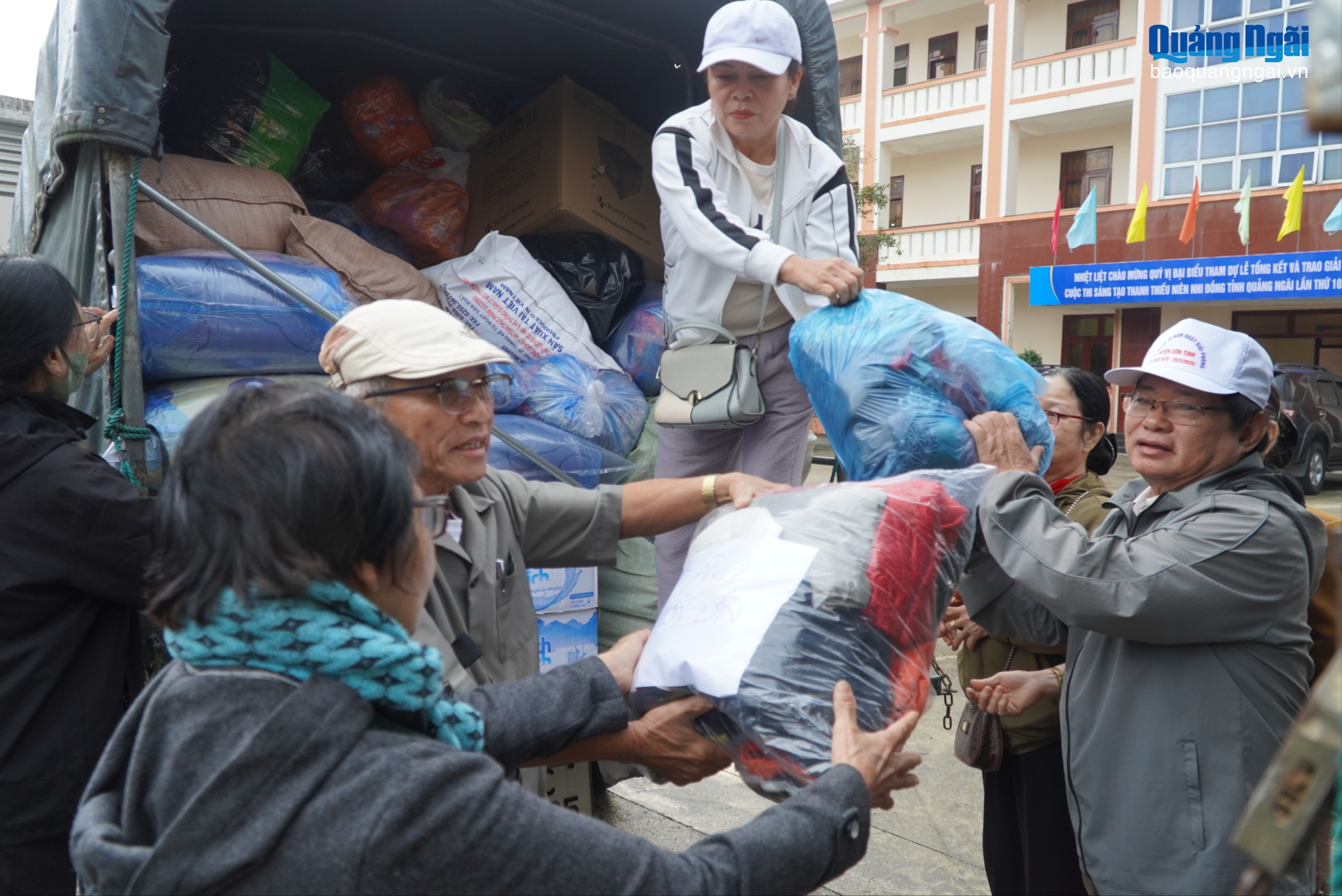 Từ số hàng hóa trên, đoàn đã chia thành 250 suất quà gồm thực phẩm, thuốc men và đồ dùng thiết yếu cho sinh hoạt. Phần lớn hàng hóa là đồ mới, được mua trực tiếp bằng nguồn kinh phí quyên góp; chỉ một số ít quần áo đã qua sử dụng nhưng được lựa chọn kỹ lưỡng, sạch sẽ và phù hợp. Tổng trị giá quà trên 375 triệu đồng do các cán bộ hưu trí của tỉnh cùng người dân trong và ngoài tỉnh đóng góp.