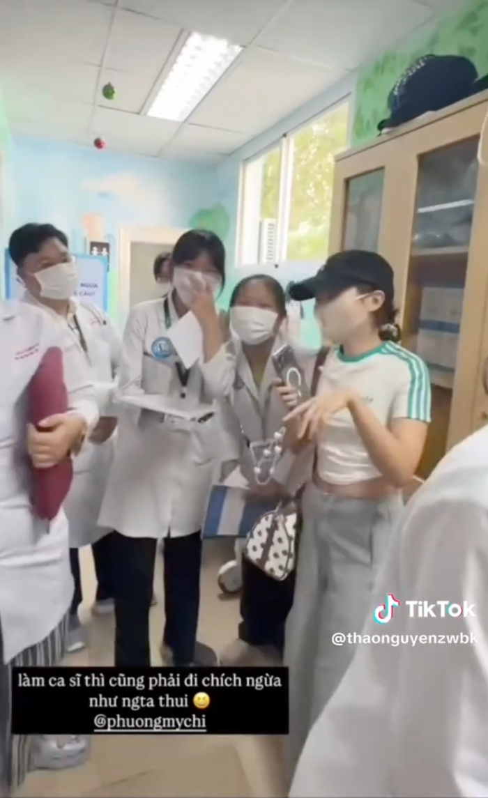 Trong clip, Phương Mỹ Chi diện trang phục giản dị, đội mũ, đeo khẩu trang kín mít để đi chích ngừa như bao người khác. Thế nhưng ngay khi cô xuất hiện, các bác sĩ và nhân viên y tế đã nhận ra giọng ca Ếch Ngoài Đáy Giếng và hào hứng xin chữ ký. Khoảnh khắc giản dị nhưng tràn đầy sự trân quý ấy nhanh chóng trở thành chủ đề gây xôn xao TikTok, khiến nhiều người không khỏi bật cười thích thú. Chủ nhân đoạn clip thậm chí còn hài hước chú thích: "Làm ca sĩ thì cũng phải đi chích ngừa như người ta thôi".