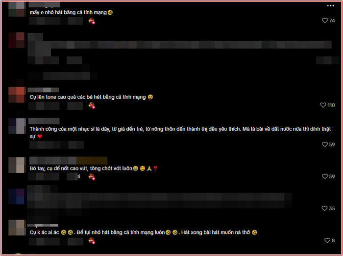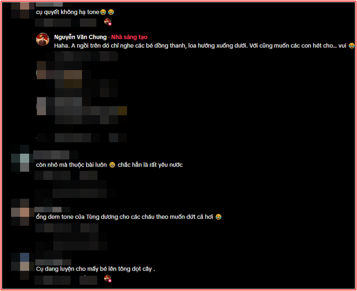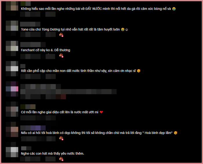 Dưới phần bình luận, đông đảo cư dân mạng bày tỏ sự thích thú và xúc động trước màn trình diễn của các em học sinh. Một số ý kiến nhận xét rằng mặc dù còn nhỏ, nhưng các em học sinh đã thuộc bài hát rất tốt, thể hiện tình yêu dành cho đất nước. Một số bình luận hài hước cho rằng nhạc sĩ Nguyễn Văn Chung "hơi ác" khi đánh tone cao như Tùng Dương, khiến các em phải "hét" hết hơi.