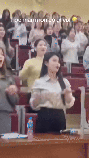 Theo đó, trên mạng xã hội đã và đang chia sẻ rầm rộ đoạn clip các cô giáo mầm non... đi học. Theo đoạn clip ghi lại, các cô giáo mầm non sẽ cùng nhau tập hát, tập múa, tập biểu cảm theo người giảng dạy. Khoảnh khắc này khiến nhiều cảm thấy thích thú vô cùng bởi họ lần đầu được biết đến công cuộc đi học của các cô giáo mầm non.