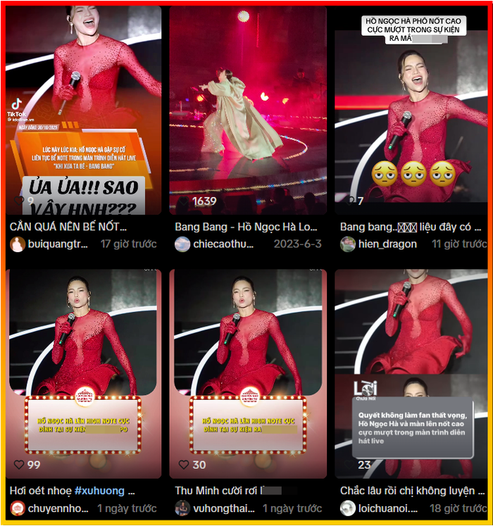 Tuy nhiên, trong phần trình diễn Bang Bang, một sự cố bất ngờ đã xảy ra. Ở đoạn cao trào của ca khúc, khi nữ ca sĩ thực hiện nốt Eb5, nốt cao “đinh” vốn thường được xem là điểm nhấn của bài hát, giọng hát của cô bất ngờ bị vỡ, tạo ra âm thanh chói và lệch tông. Khoảnh khắc đó diễn ra ngay trước hàng trăm khán giả, khiến không ít người ngỡ ngàng, bởi đây vốn là bài hát từng được Hồ Ngọc Hà thể hiện trọn vẹn trong nhiều đêm diễn trước.