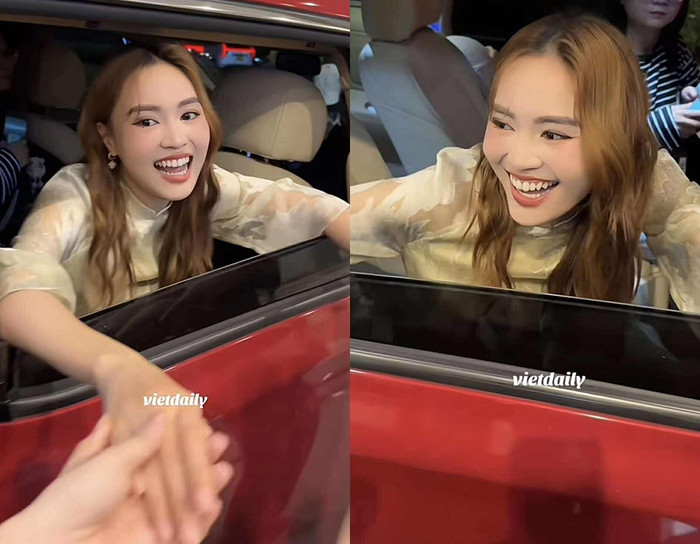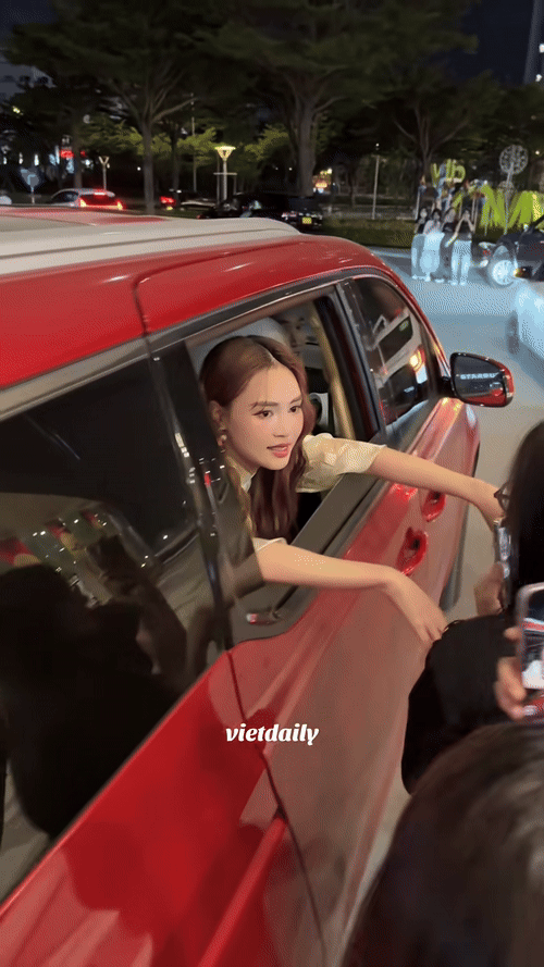 Nhiều khán giả đã nán lại để tiễn “ngọc nữ" màn ảnh ra tận ô tô, tạo nên khung cảnh ấm áp và sôi nổi. Đáp lại tình cảm này, Ninh Dương Lan Ngọc giữ thái độ vui vẻ, liên tục vẫy tay chào, trò chuyện thân thiện và chụp hình cùng người hâm mộ.