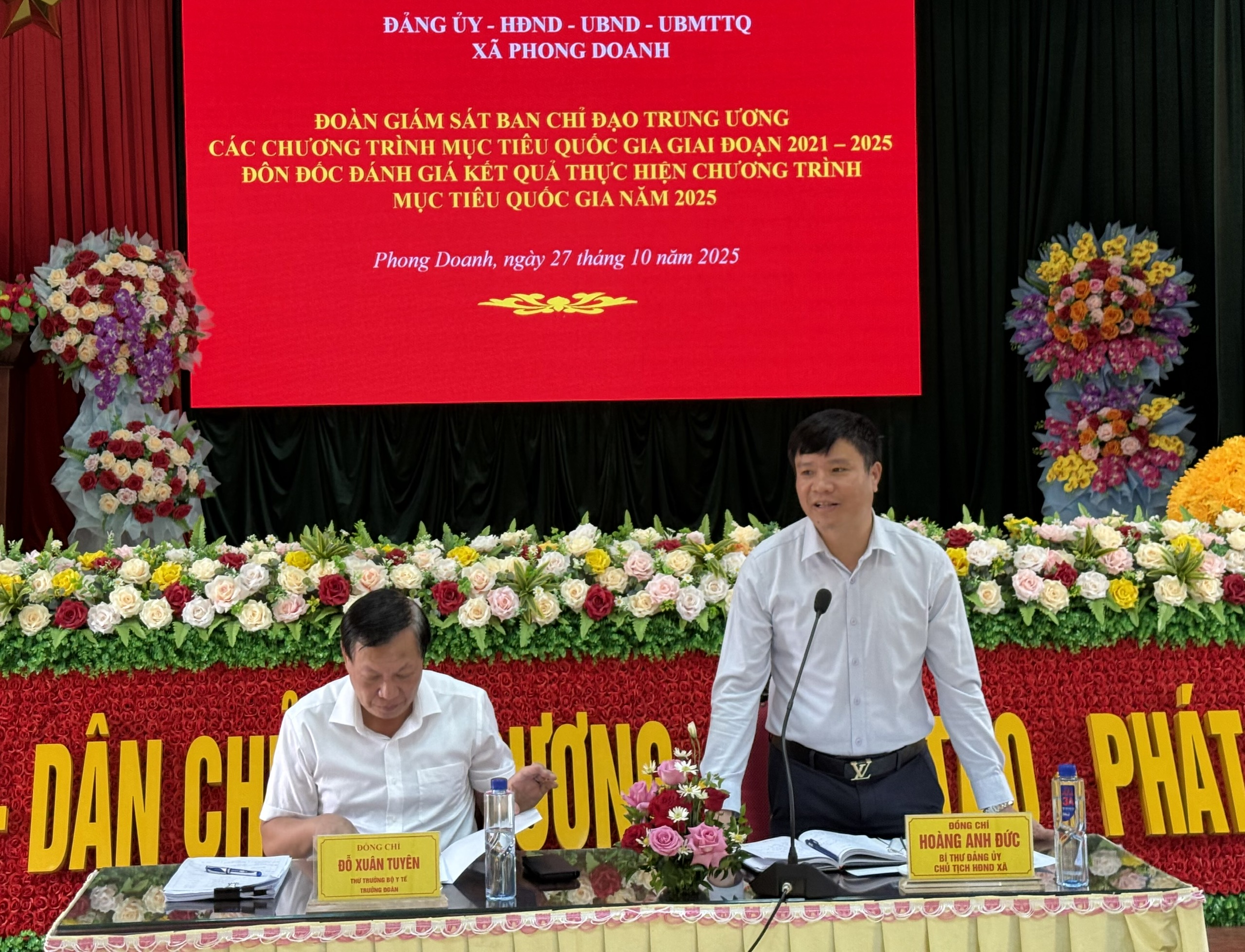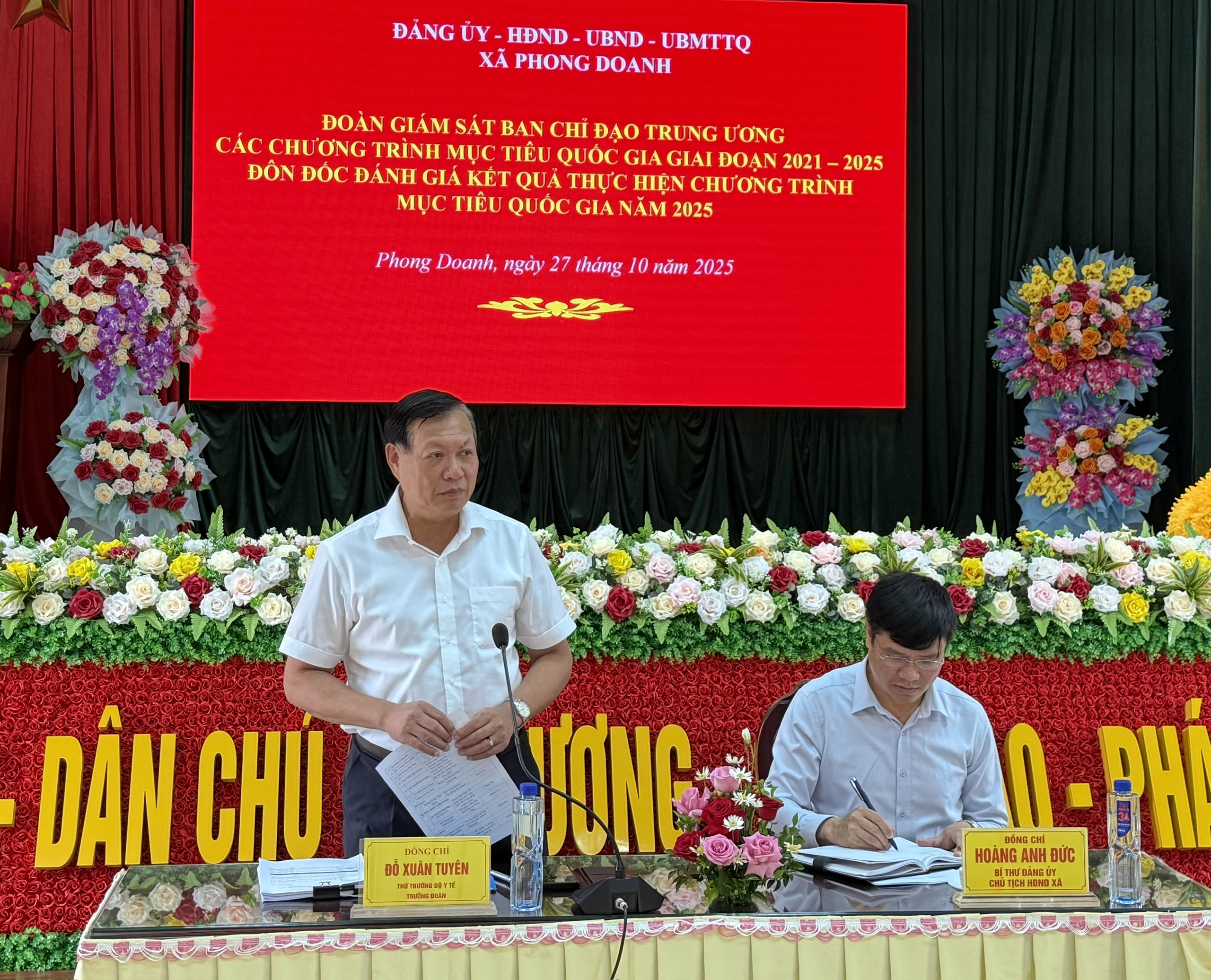 Phát biểu tại buổi làm việc, Thứ trưởng Đỗ Xuân Tuyên đánh giá cao sự nỗ lực, cố gắng và những kết quả mà xã Phong Doanh đã đạt được trong triển khai thực hiện các chương trình mục tiêu quốc gia trên địa bàn thời gian qua.