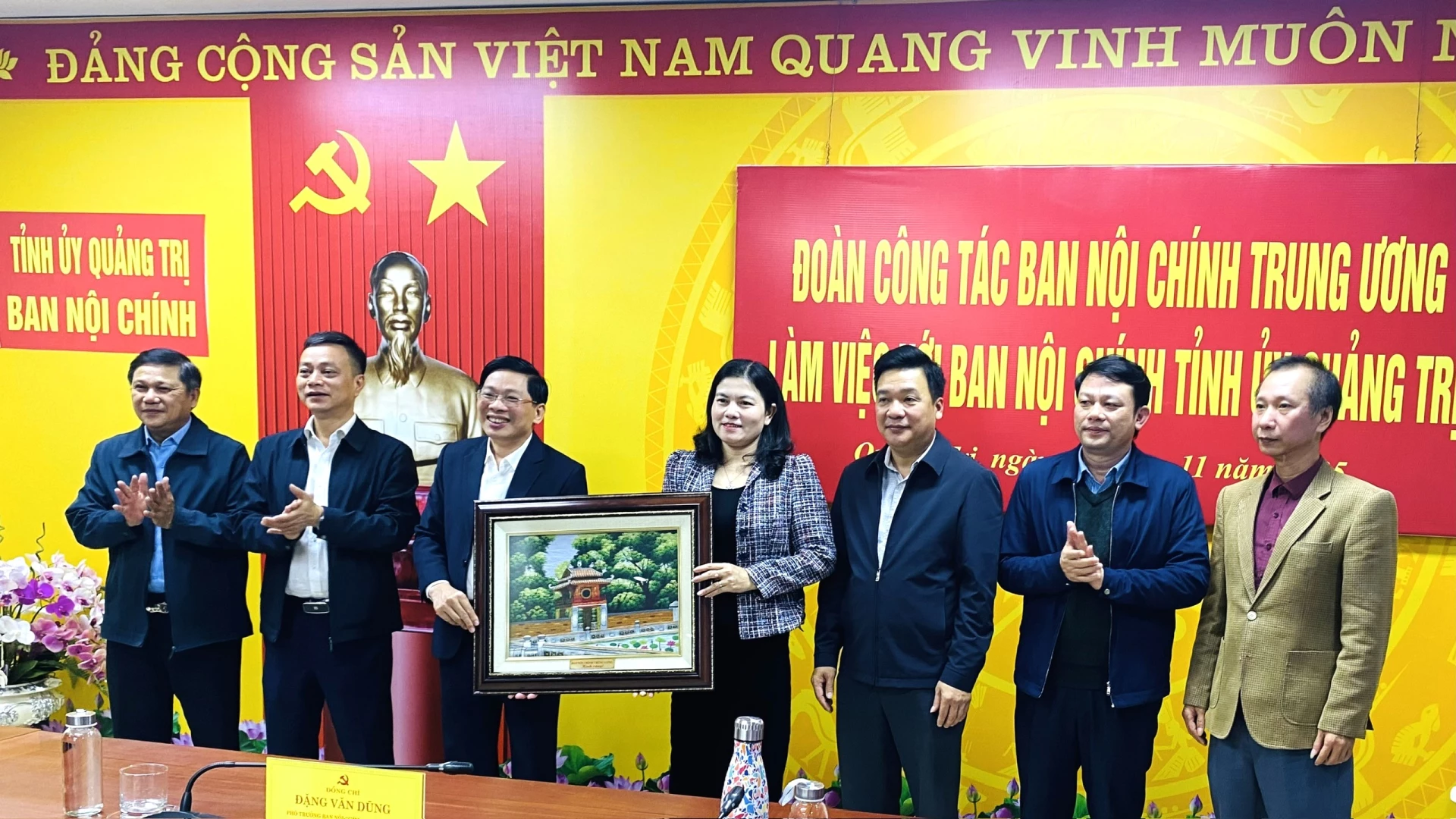 Đoàn công tác Ban Nội chính Trung ương tặng quà Ban Nội chính Tỉnh ủy Quảng Trị - Ảnh: Tố Linh