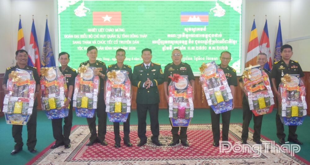 Nhân dịp này, Bộ CHQS tỉnh Đồng Tháp và Đội K91 tặng những phần quà chúc tết đến Tiểu khu và các Chi khu Quân sự thuộc tỉnh Prey-Veng.