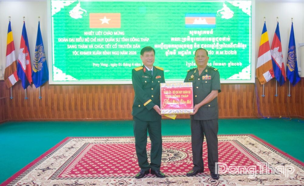 Thay mặt Lực lượng vũ trang tỉnh Đồng Tháp, Đại tá Cao Văn Thảo chúc cán bộ, binh sĩ Lực lượng vũ trang cùng gia đình và Nhân dân tỉnh Prey-Veng đón Tết Cổ truyền Chôl Chnăm Thmây nhiều sức khỏe, an khang, thịnh vượng, hạnh phúc, thành công; chúc tình đoàn kết, hữu nghị giữa Nhân dân và Lực lượng vũ trang tỉnh Đồng Tháp - Prey-Veng ngày càng gắn kết, đời đời bền vững với phương châm “Láng giềng tốt đẹp, hữu nghị truyền thống, hợp tác, bền vững lâu dài”.