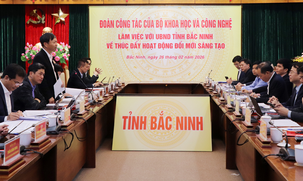 Đồng chí mong muốn tiếp tục nhận được sự quan tâm, hướng dẫn, đồng hành của Bộ để tỉnh Bắc Ninh tháo gỡ khó khăn, hoàn thiện cơ chế, thúc đẩy hệ sinh thái đổi mới sáng tạo phát triển hiệu quả, bền vững. Tỉnh sẽ cử cán bộ tham gia hỗ trợ và bố trí cơ sở vật chất, điều kiện để tổ công tác của Bộ làm việc. Tỉnh phấn đấu thành lập xong Trung tâm đổi mới sáng tạo trong tháng 5/2026.