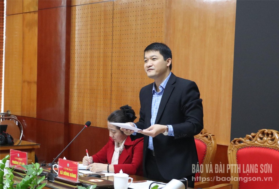 Lãnh đạo Đảng ủy xã Đồng Đăng phát biểu ý kiến tại buổi làm việc