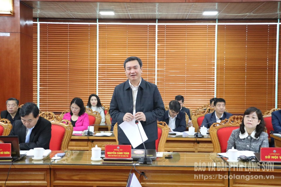 Tại buổi làm việc, đồng chí Nguyễn Cảnh Toàn, Phó Bí thư Tỉnh ủy, Chủ tịch UBND tỉnh đồng tình với kiến nghị của Sở NN&MT và các ý kiến của thành viên đoàn công tác. Đồng chí mong muốn, Bộ NN&MT tiếp tục quan tâm hỗ trợ tỉnh thực hiện dự án thoát lũ tại khu vực xã Thất Khê; hỗ trợ cảnh báo vùng ngập lụt; xây dựng bản đồ cảnh báo khu vực nguy cơ sạt lở.