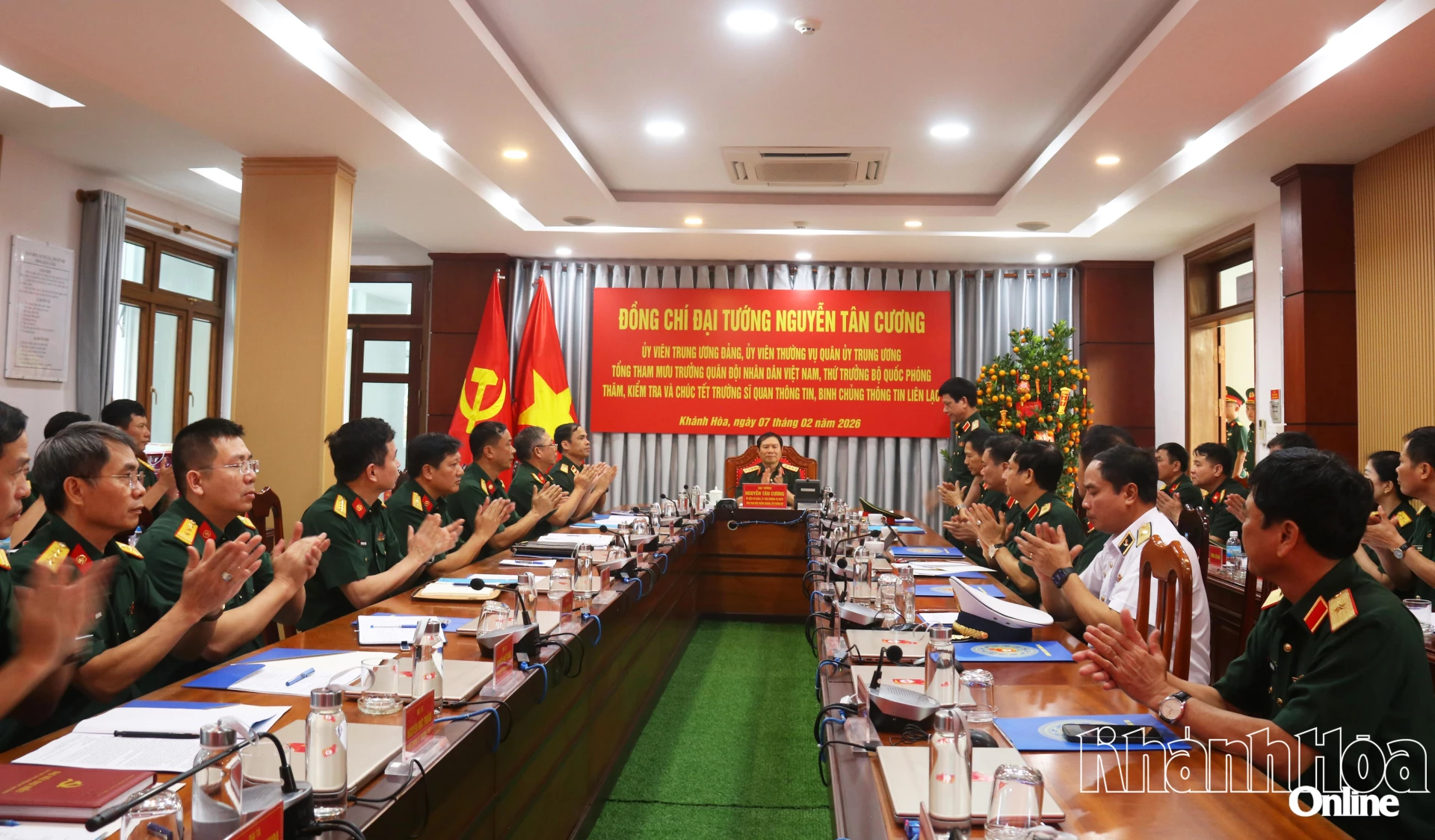 Chiều 7-2, Đoàn công tác Bộ Quốc Phòng do Đại tướng Nguyễn Tân Cương - Ủy viên Ban Chấp hành Trung ương Đảng, Ủy viên Thường vụ Quân ủy Trung ương, Tổng Tham mưu trưởng Quân đội Nhân dân Việt Nam, Thứ trưởng Bộ Quốc Phòng làm Trưởng đoàn, đã đến thăm, chúc Tết các lực lượng, đơn vị gồm: Công an tỉnh, Bộ Chỉ huy Quân sự tỉnh, Trường Sĩ quan Thông tin. Đồng chí Nguyễn Long Biên - Ủy viên Ban Thường vụ Tỉnh ủy, Phó Chủ tịch Thường trực UBND tỉnh Khánh Hòa cùng đi với đoàn công tác.
