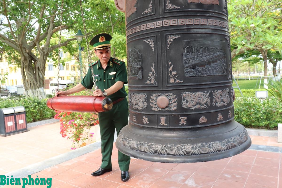 Trung tướng Vũ Trung Kiên thực hiện nghi thức thỉnh chuông Đền thờ Bác Hồ và các Anh hùng, liệt sĩ tỉnh Quảng Trị. Ảnh: Viết Lam