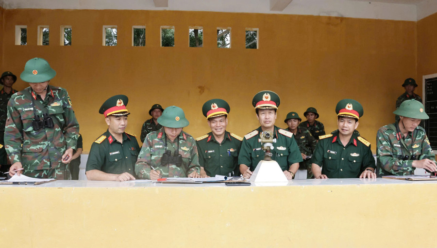 Đoàn công tác kiểm tra tại Trung đoàn Pháo Binh 4 (Sư đoàn 10, Quân đoàn 34). Ảnh: T.D