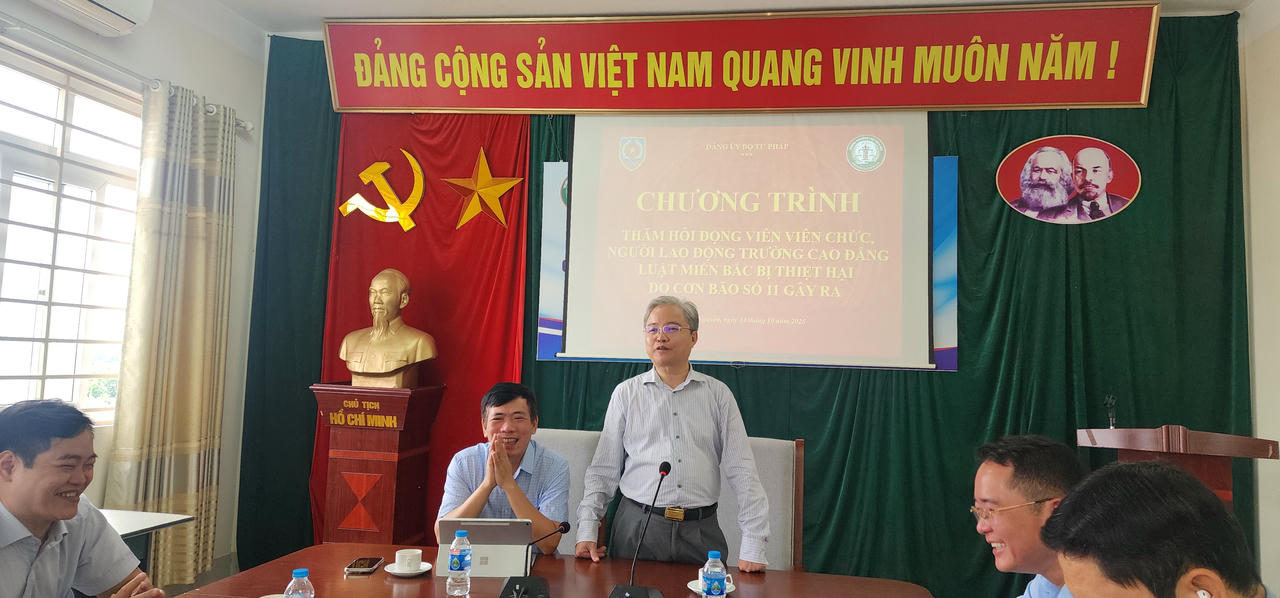 Tại trụ sở trụ sở THADS tỉnh Thái Nguyên, ông Nguyễn Quang Thái, Phó Bí thư chuyên trách Đảng ủy Bộ Tư pháp chia sẻ về những thiệt hại do hoàn lưu bão số 11 gây ra với các bộ, người lao động THADS tỉnh Thái Nguyên.