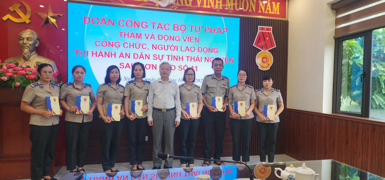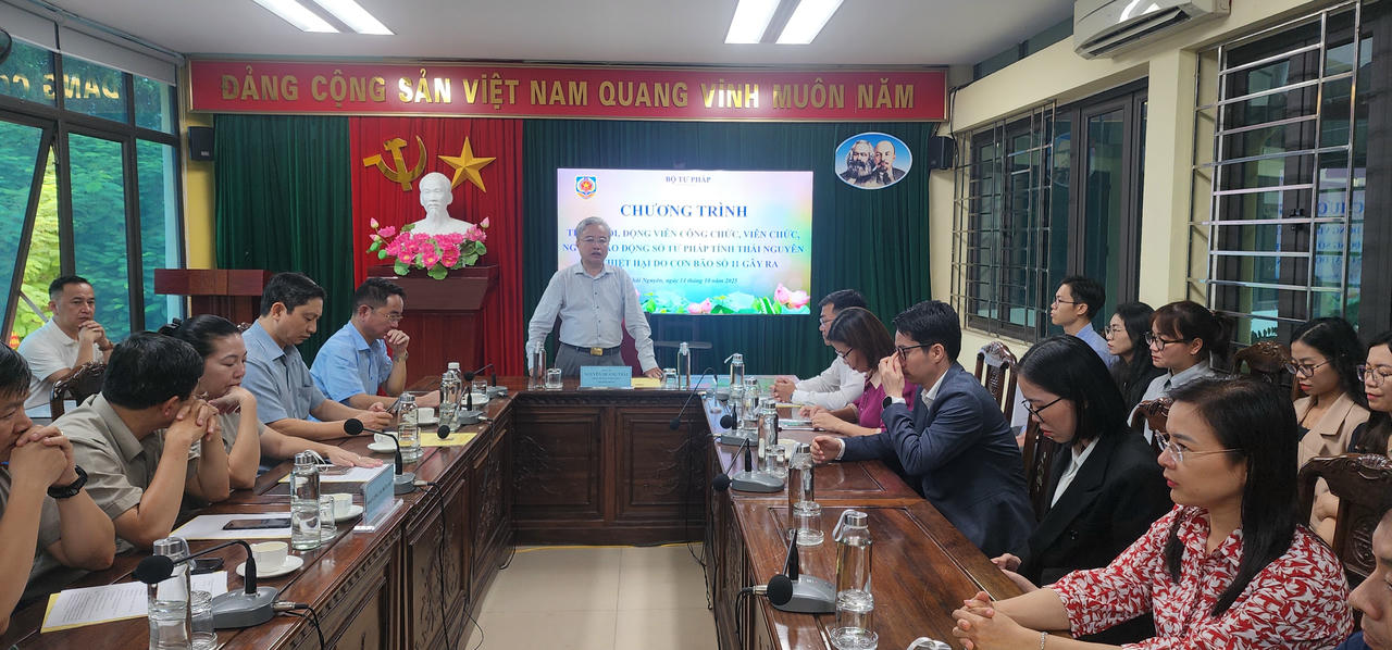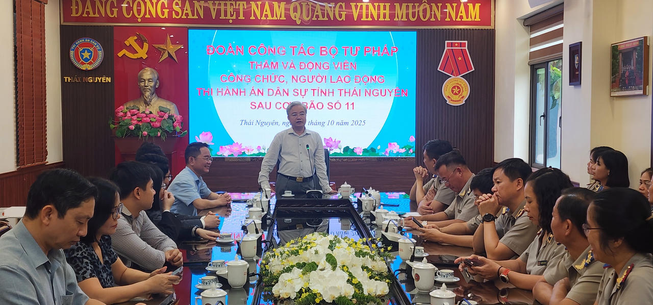 Phát biểu tại buổi làm việc, ông Nguyễn Quang Thái, Phó Bí thư chuyên trách Đảng ủy Bộ Tư pháp nhấn mạnh: “Những thiệt hại do bão số 11 gây ra là tổn thất lớn, song điều đáng trân trọng là tinh thần đoàn kết, chủ động ứng phó của cán bộ, công chức ngành Thi hành án dân sự tỉnh Thái Nguyên".