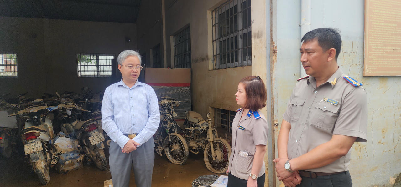 Kho vật chứng của đơn vị cũng chịu thiệt hại nghiêm trọng. Một số hồ sơ thi hành án, hồ sơ kế toán, văn thư, tài liệu lưu trữ tại tầng 1 bị ướt, mủn hoặc hư hỏng do tủ hồ sơ bị đổ. Nhiều vật chứng, trong đó có bàn ghế, két sắt, xe máy... được bảo quản tại kho 1 tầng nằm ở vị trí thấp, đã bị ngập sâu trong nước, ướt, hỏng hoặc thất lạc thẻ kho. Các cơ quan đang tiến hành rà soát, kiểm kê, lập danh sách chi tiết để báo cáo sau.