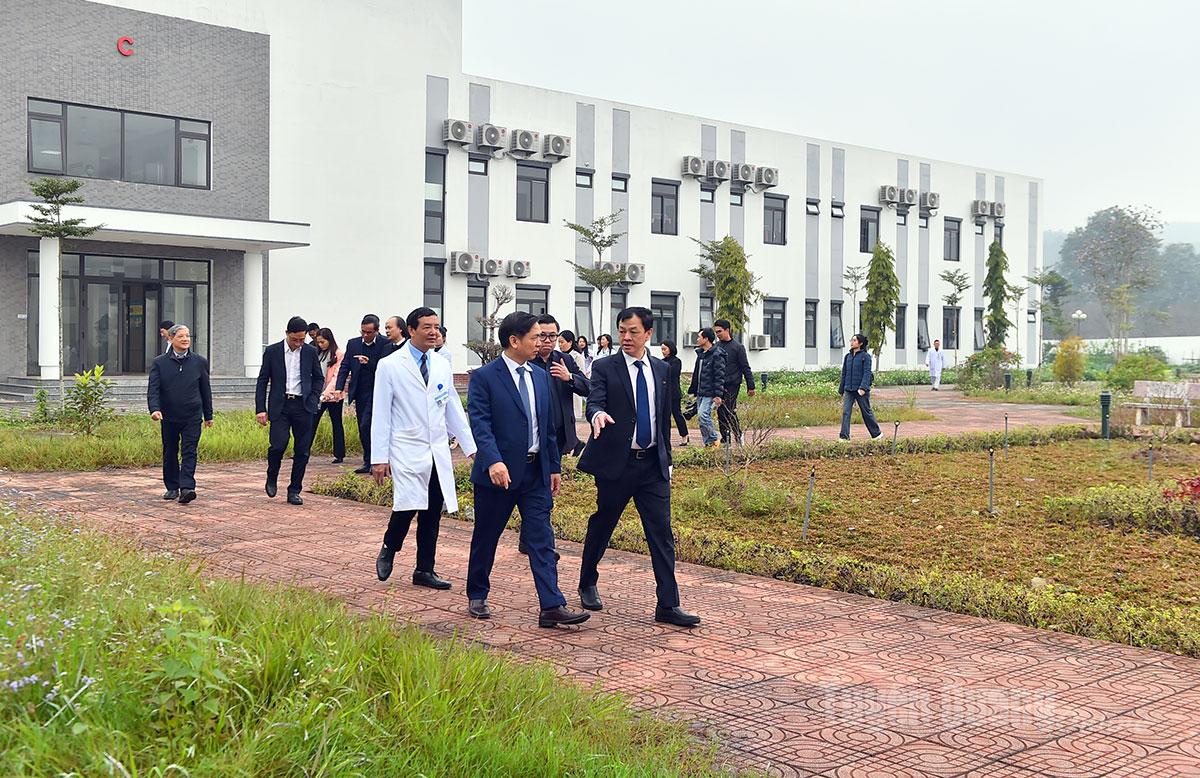 PGS.TS, Thứ trưởng Bộ Y tế Nguyễn Tri Thức kiểm tra cơ sở vật chất Bệnh viện suối khoáng Mỹ Lâm.