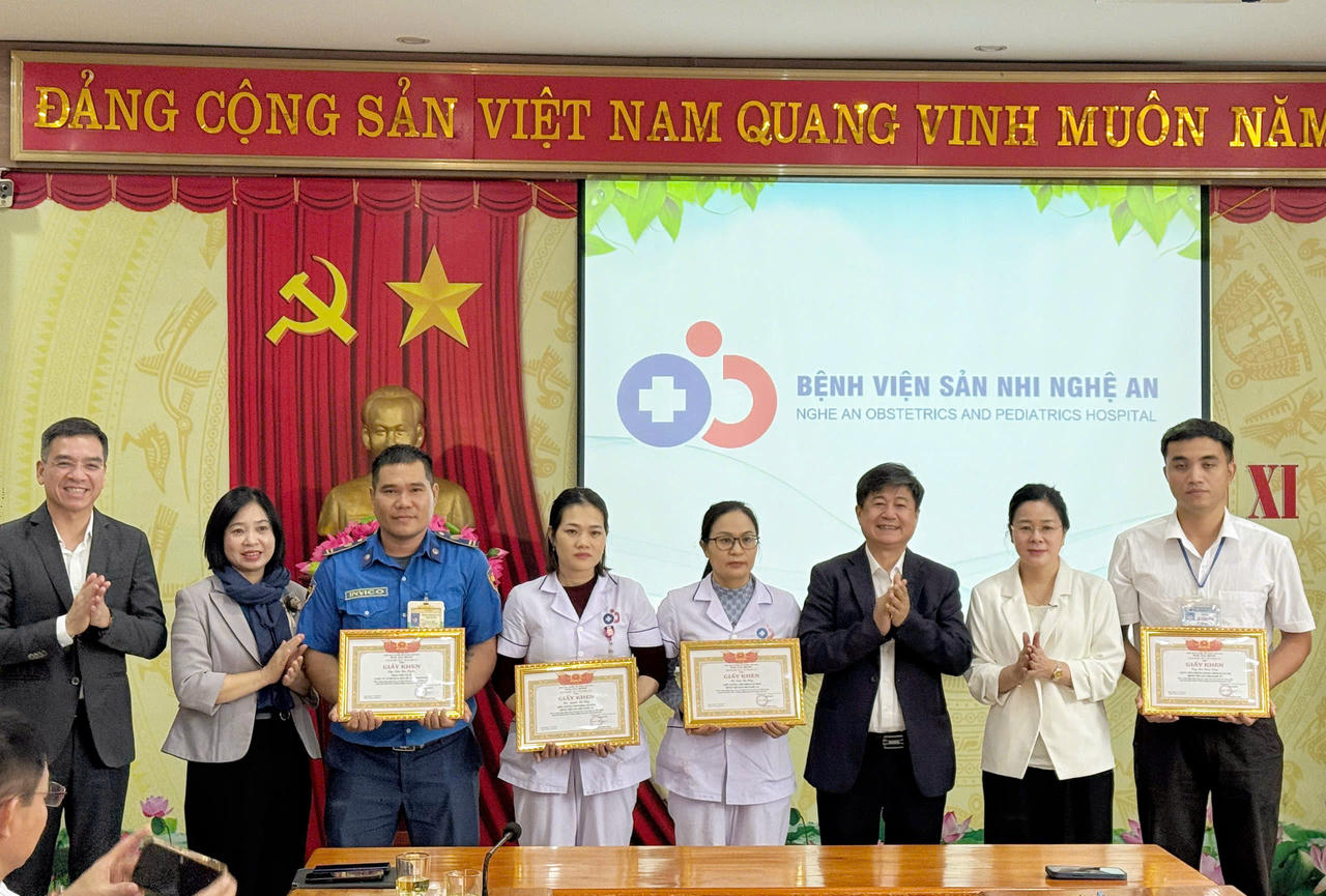 8 cá nhân đã có hành động dũng cảm, can ngăn, bảo vệ an toàn cho bệnh nhân, người nhà bệnh nhân và đồng nghiệp trong tình huống nguy cấp được Sở Y tế Nghệ An tặng giấy khen.
