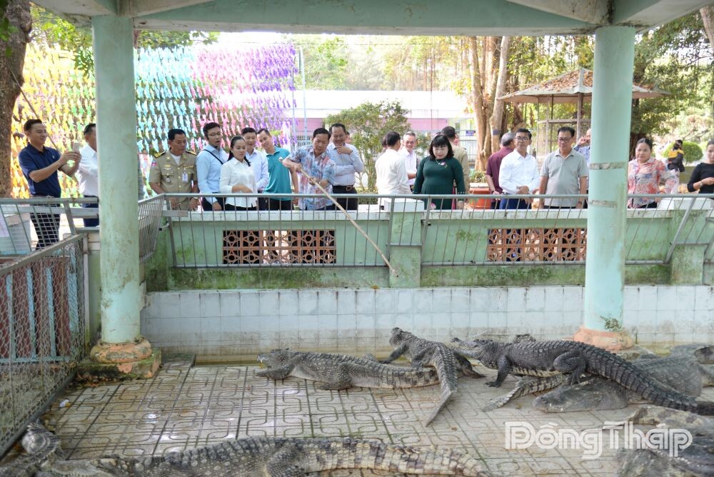 Tại đây, Đoàn công tác đã được thông tin về lịch sử hình thành của Trại rắn Đồng Tâm (xã Kim Sơn, tỉnh Đồng Tháp). Đồng thời, tham quan khu vực trưng bày các sản phẩm chế biến từ rắn, bảo tàng rắn; xem các loài rắn quý hiếm và động vật hoang dã; xem biểu diễn lấy nọc rắn…