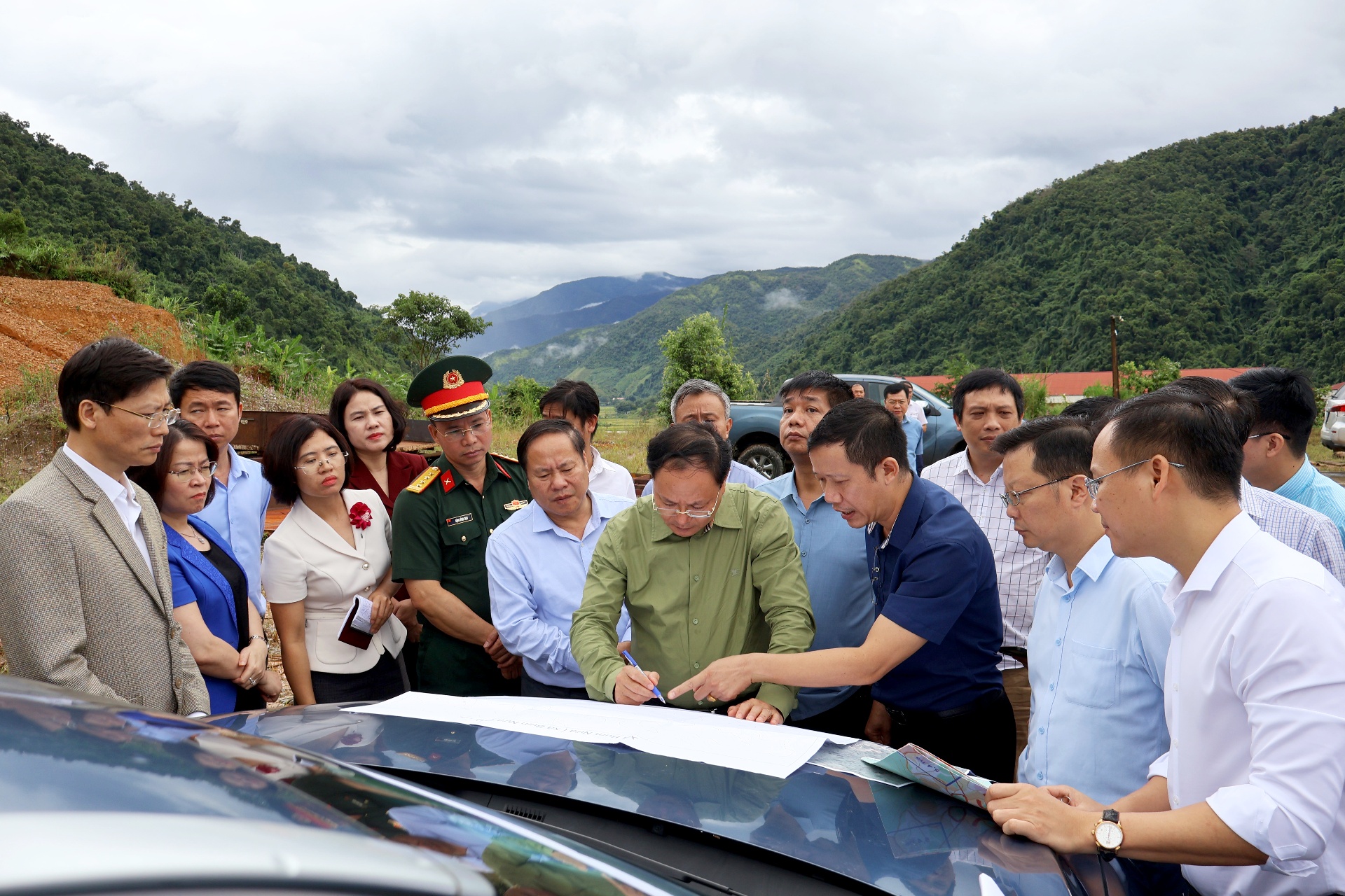 Đoàn công tác của Ban Thường vụ Tỉnh ủy kiểm tra công tác chuẩn bị đầu tư xây dựng Trường Phổ thông Dân tộc Bán trú Tiểu học và THCS Hua Bum.