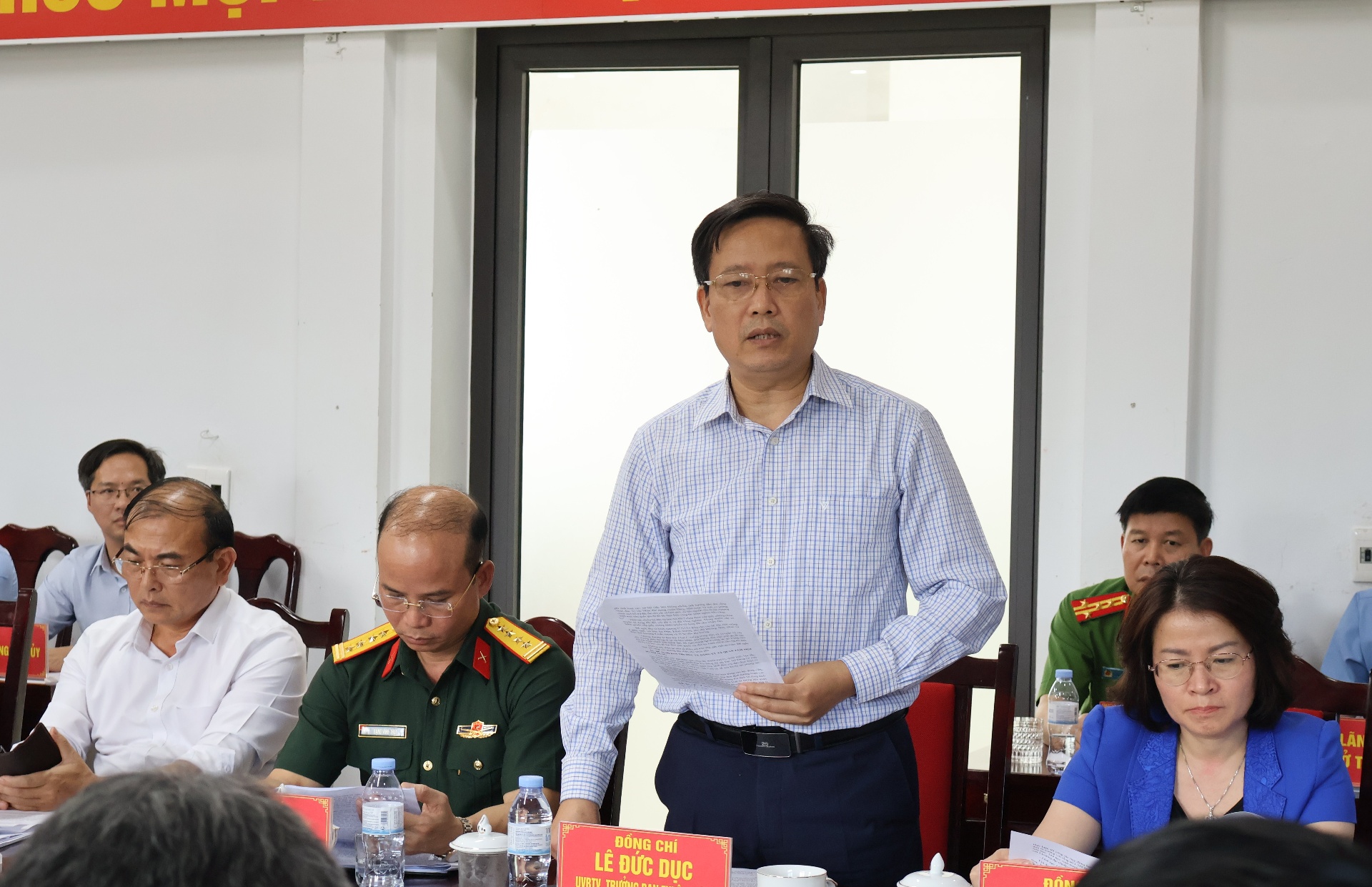 Đồng chí Lê Đức Dục - Ủy viên Ban Thường vụ, Trưởng Ban Tuyên giáo và Dân vận Tỉnh ủy phát biểu tại buổi làm việc.
