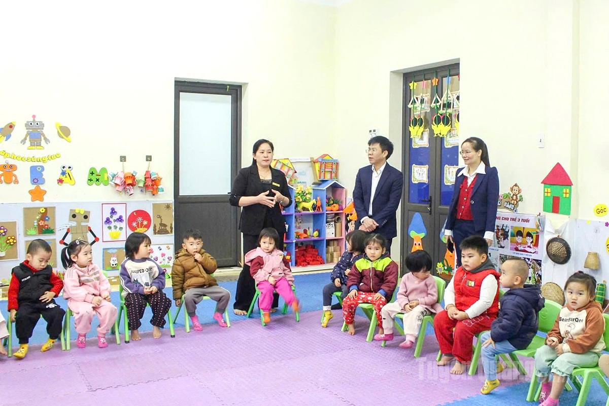 Trước buổi làm việc, đoàn công tác đã trực tiếp đi kiểm tra thực tế cơ sở vật chất, điều kiện dạy và học tại các trường học trên địa bàn xã; đồng thời lắng nghe, nắm bắt tình hình và những khó khăn, vướng mắc của các nhà trường để kịp thời có định hướng, kiến nghị phù hợp.