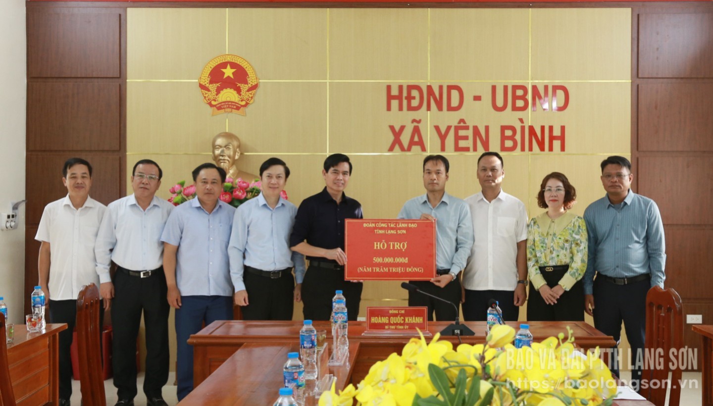 Đoàn công tác trao biển tượng trưng hỗ trợ xã Yên Bình kinh phí khắc phục hậu quả thiên tai