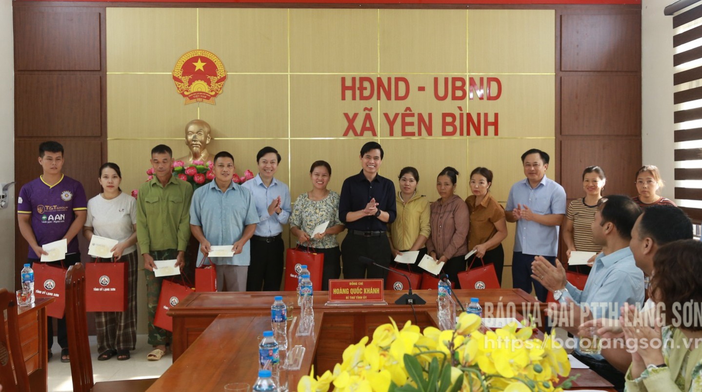 Đồng chí Bí thư Tỉnh ủy, đồng chí Trưởng Ban Nội chính Tỉnh ủy và lãnh đạo Ủy ban MTTQ Việt Nam tỉnh tặng quà người dân xã Yên Bình