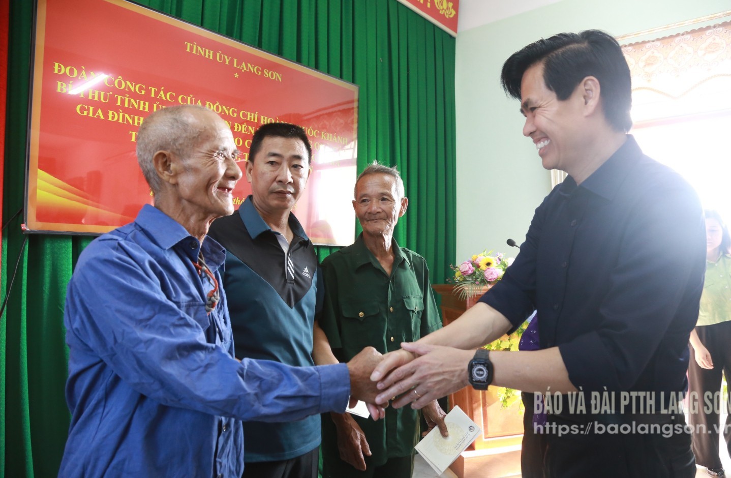Đồng chí Hoàng Quốc Khánh, Bí thư Tỉnh ủy động viên, tặng quà người dân bị thiệt hại do bão lũ ở xã Thiện Tân